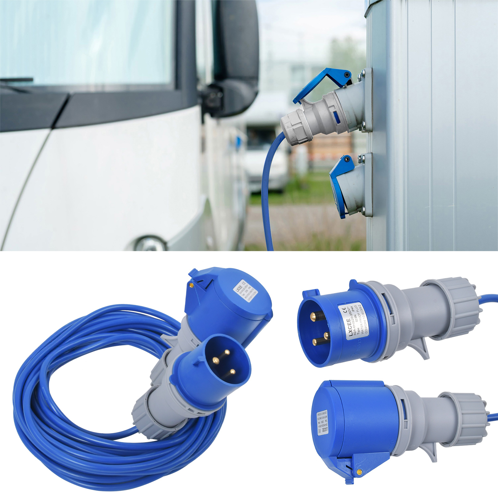 • 2.All extension leads include a blue 32A plug and 32A Connector (socket).