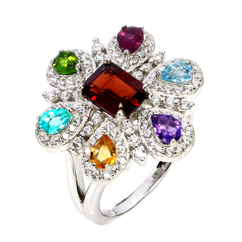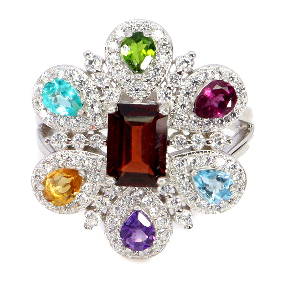 Amethyst, Chrome Diopside, Citrine, Simulated Cz, Paraiba Blue Topaz, Rhodolite Garnet, Sky Blue Topaz