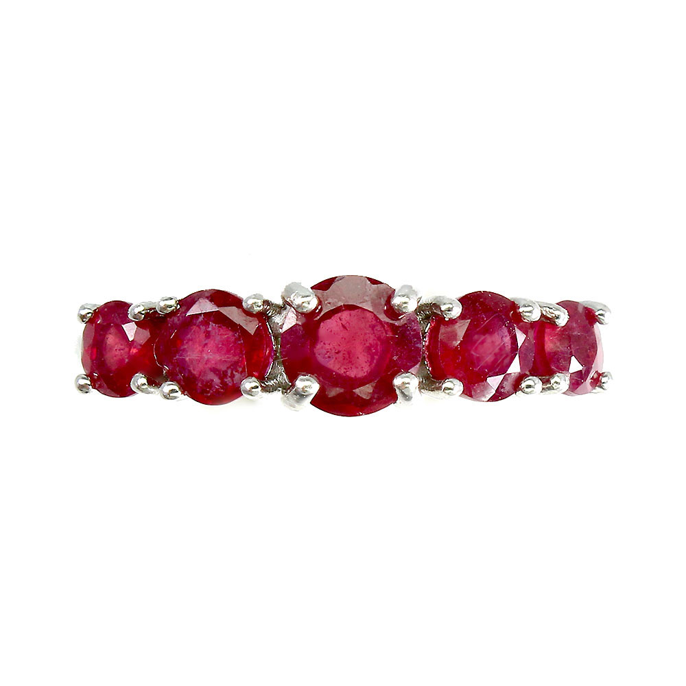 Heated Round Red Ruby 5mm 14K White Gold Plate 925 Sterling Silver Ring Size 7