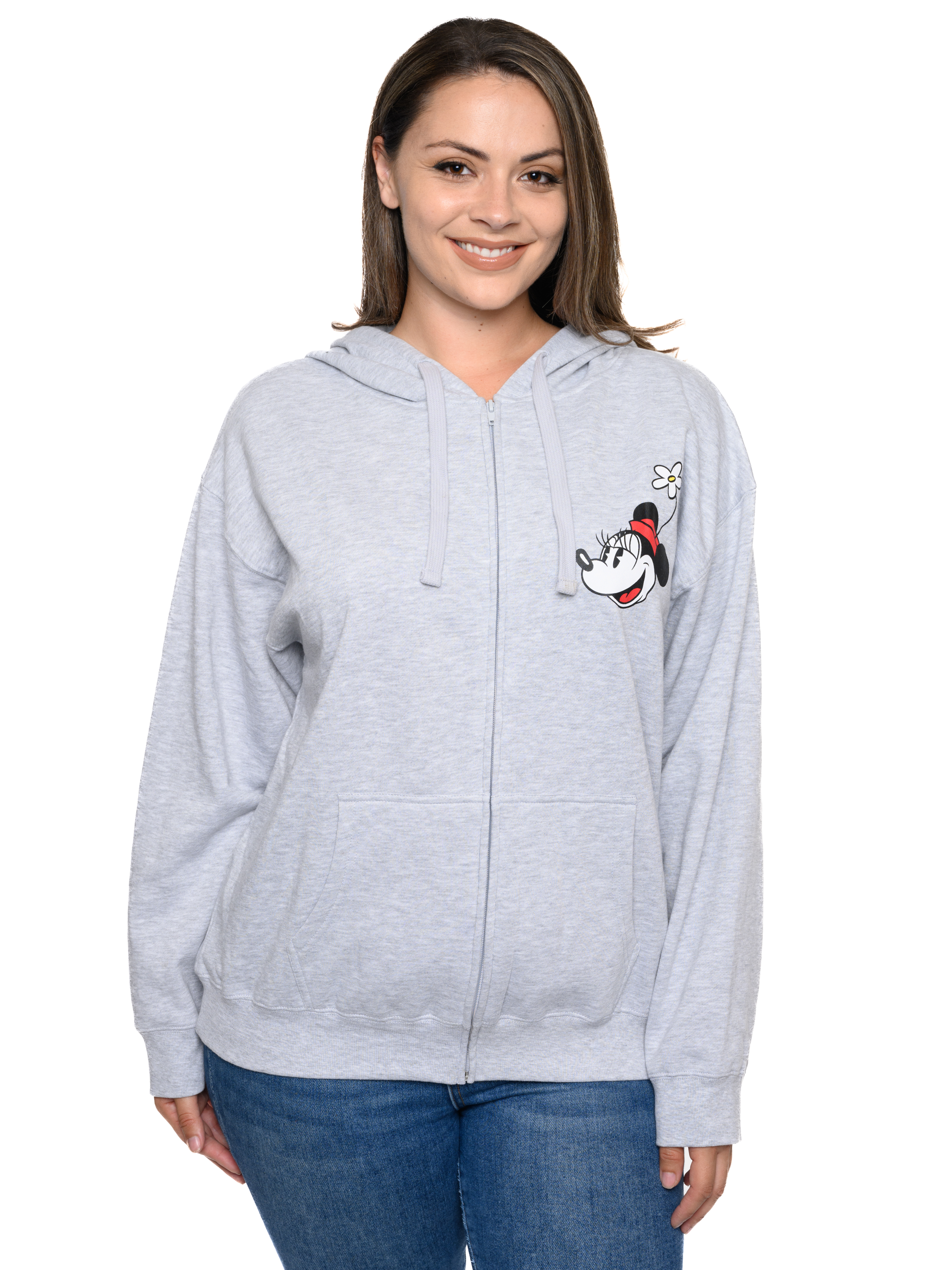 - Disney Mickey Minnie Mouse Zippered Woman's Plus Size Hoodie Sweatshirt Gray.
