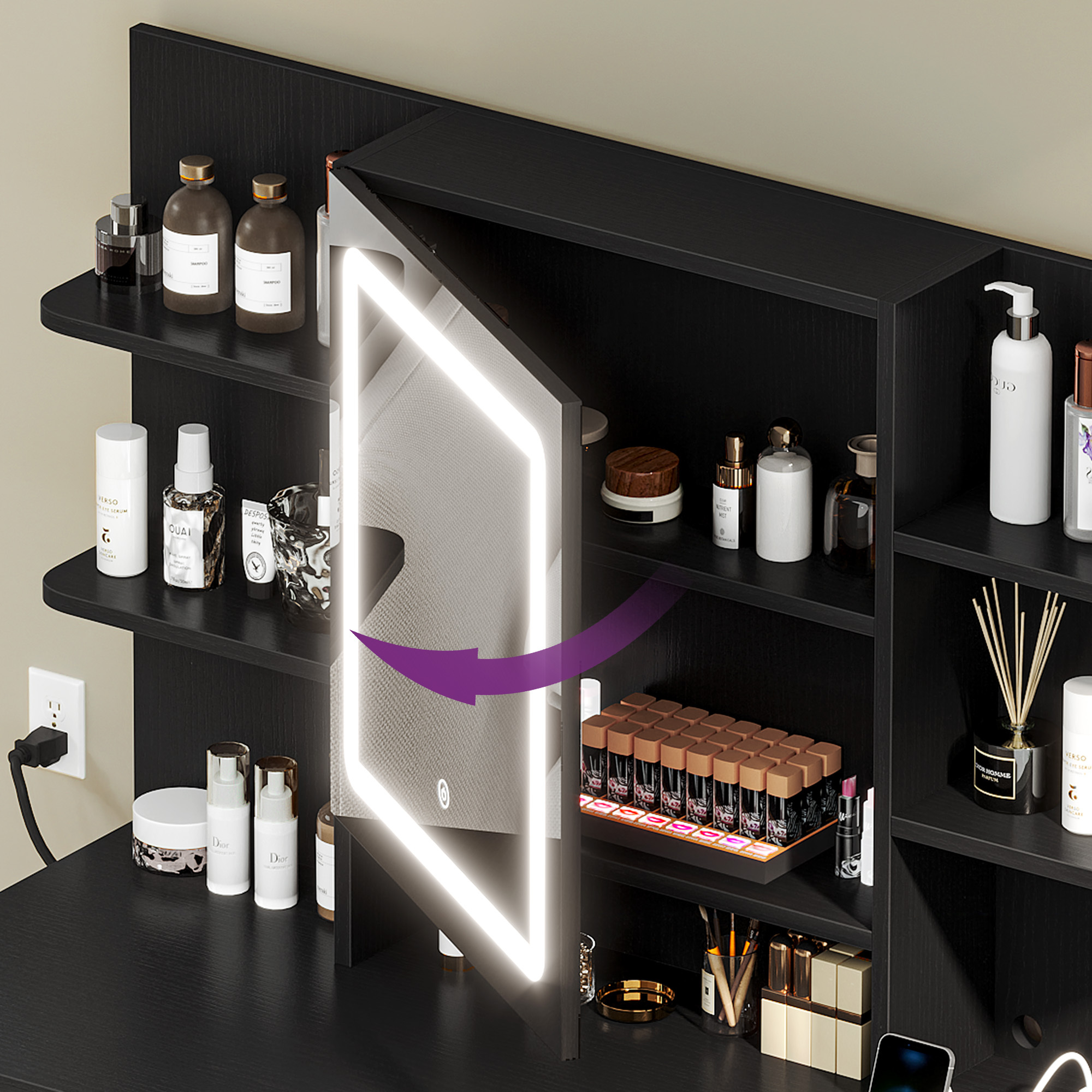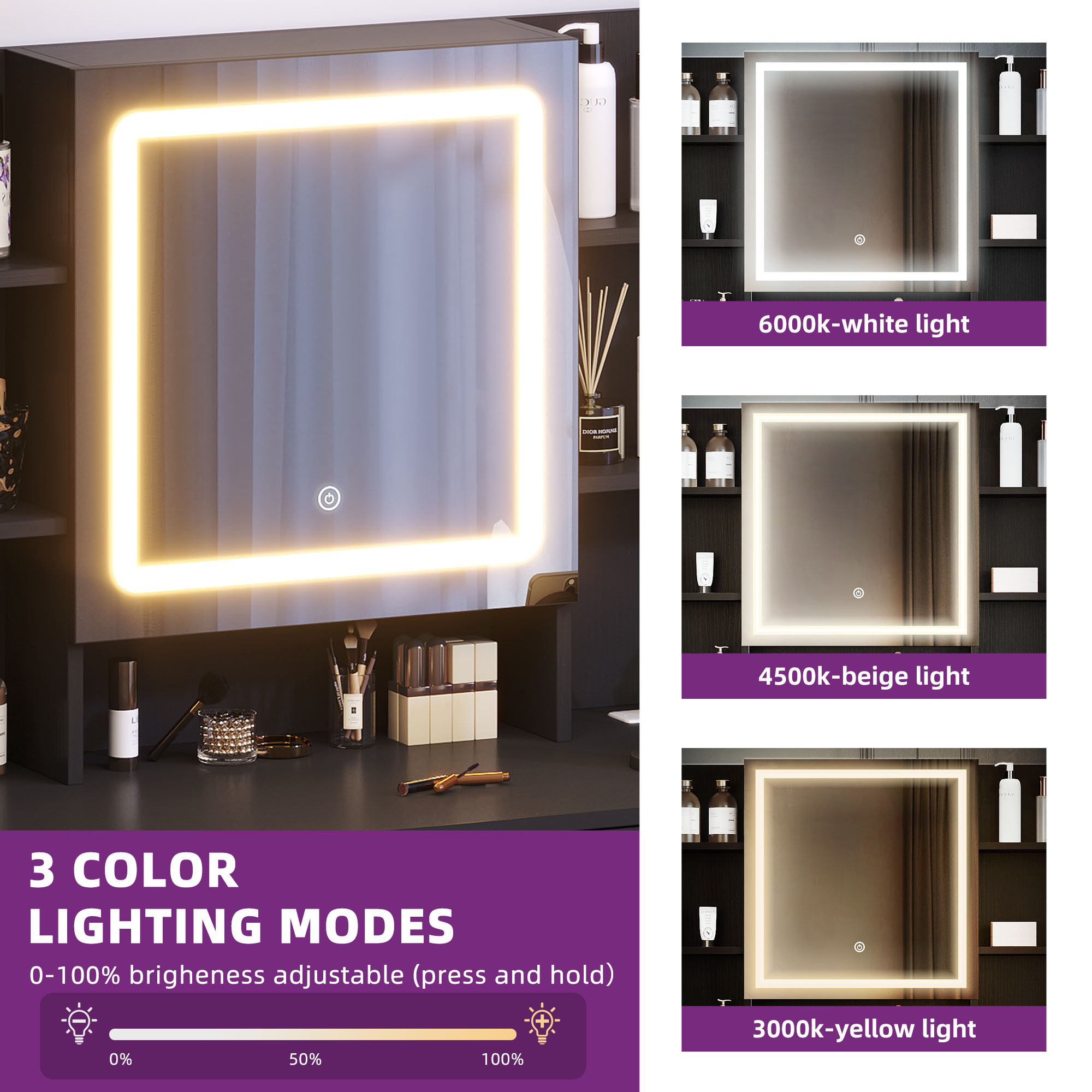Special Feature: 3 Drawers, 3 Color Lighting, with Charging Station