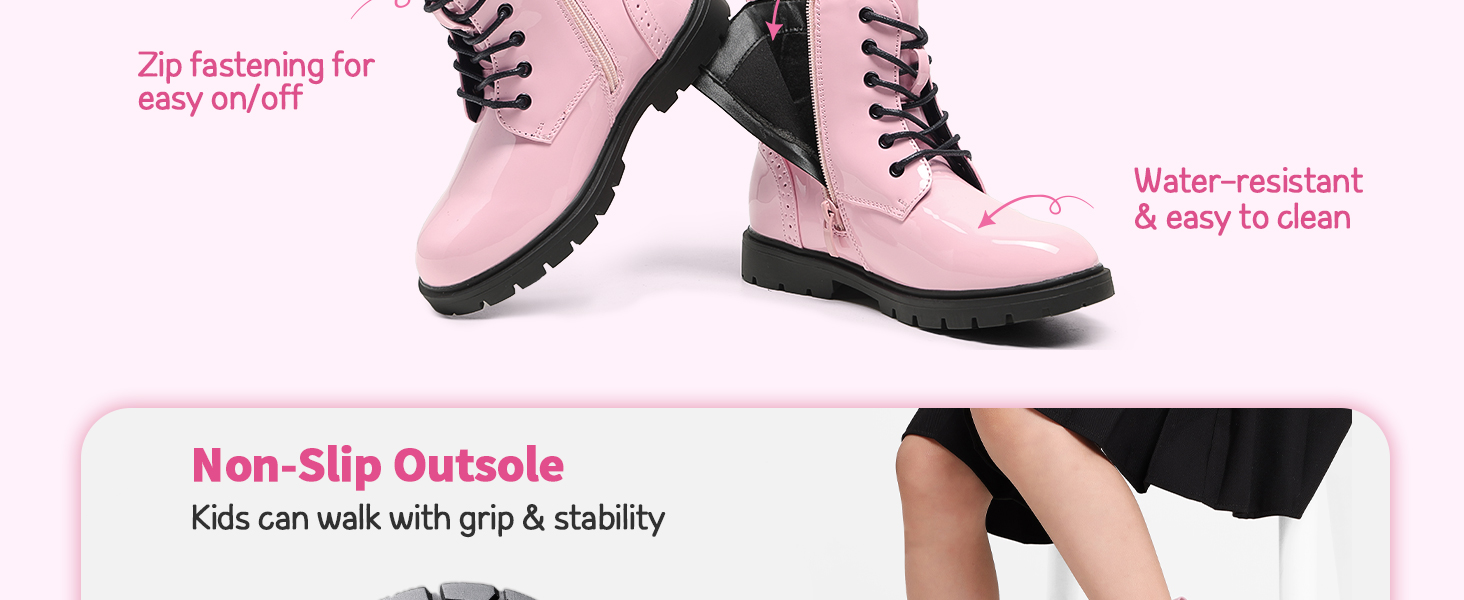 Easy On & Off: A side zipper allows kids to put on and take off their boots independently, while the lace-up design ensures a secure and stylish fit.