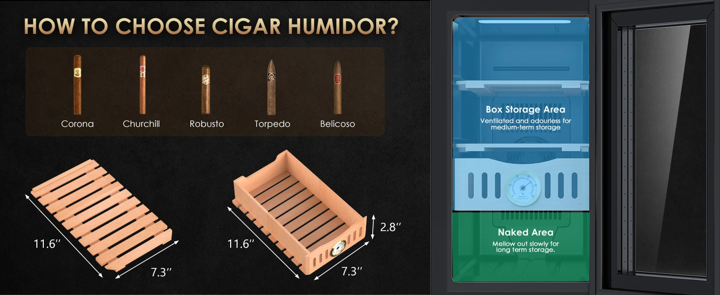 With a 25L capacity (200+ cigars), innovative bottom storage design, and freestanding installation, it fits seamlessly into homes, bars, or clubs. The LCD display, touch controls, and US plug offer convenience for daily use or special occasions like gifts and gatherings.