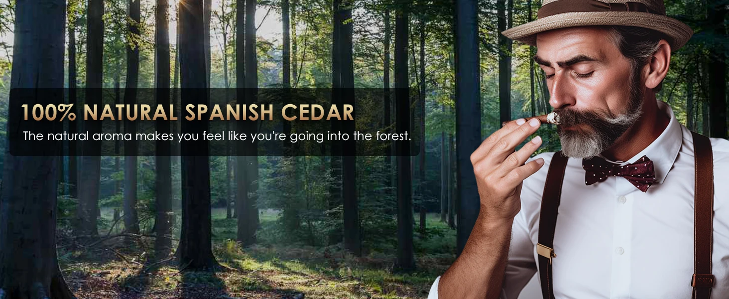 Built with authentic Spanish cedar wood shelves and drawers, this humidor naturally emits a rich aroma to enhance cigar flavor, prevent mold, and eliminate odors. The designed cut-outs promote air circulation for consistent conditioning.