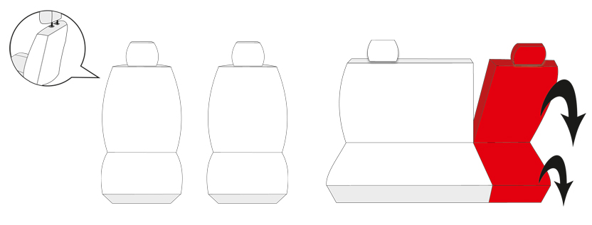 Sämtliche Auto-Schonbezüge werden für jeweiliges Fahrzeug-Modell nach Maß geschneidert und somit der Originalpolsterung zu 100% angepasst. Dank einer Spezialnaht bedecken die Bezüge Sitze vollständig, ohne die AIRBAG-Funktion zu stören.