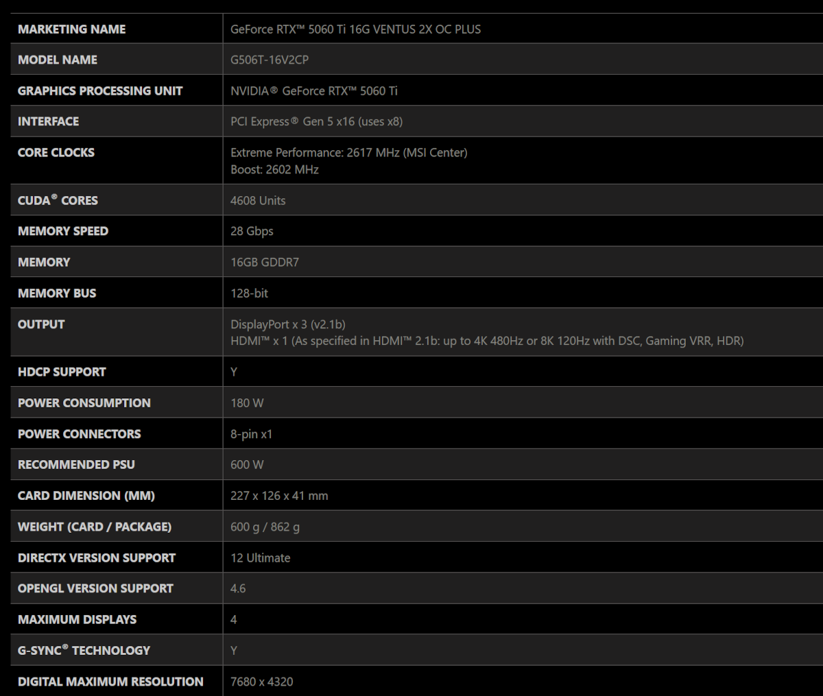SPECIFICATIONS