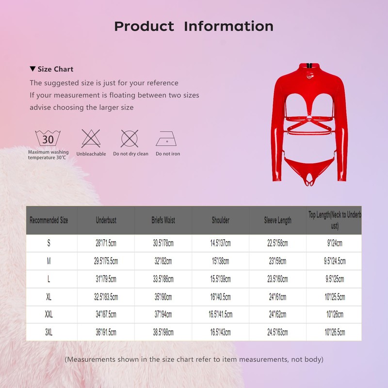 | Tag No. | Recommended Size | Underbust | Briefs Waist | Shoulder | Sleeve Length | Top Length(Neck to Underbust) |