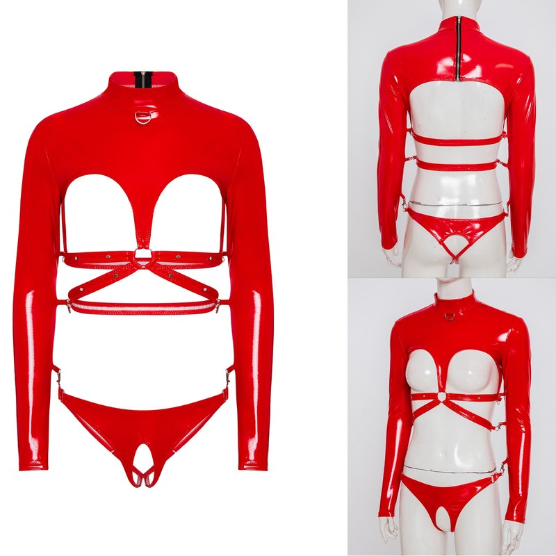 Crafted from a blend of PU, alloy, and polyester, this bodysuit offers a unique combination of texture and durability, ensuring a long-lasting and comfortable fit.