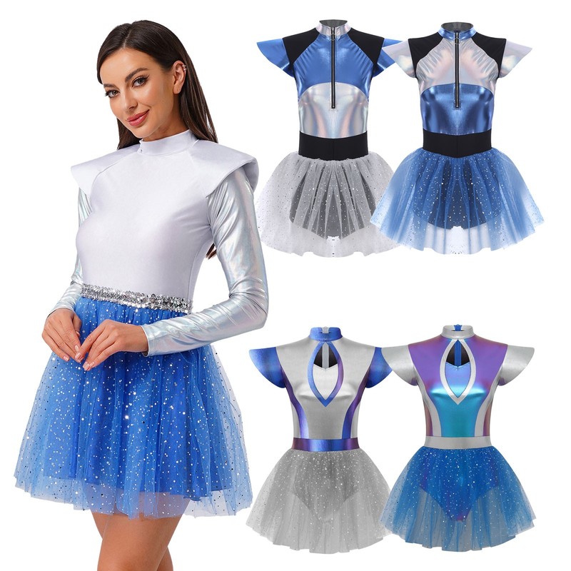 Ideal for Halloween parties, space-themed events, or any costume-centric gatherings, this dress will let you embrace the festive spirit and show off your unique style.