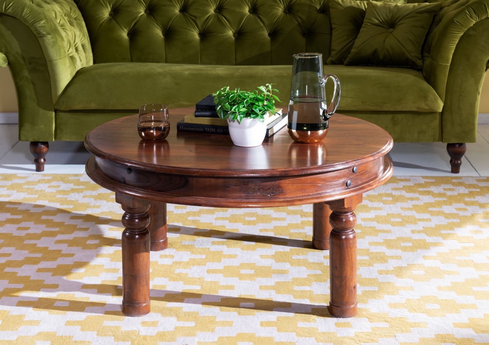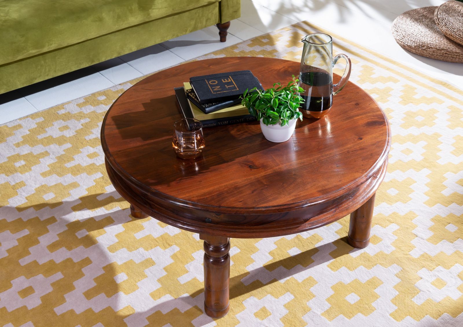 - runder Couchtisch im Landhausstil aus massiver Akazie