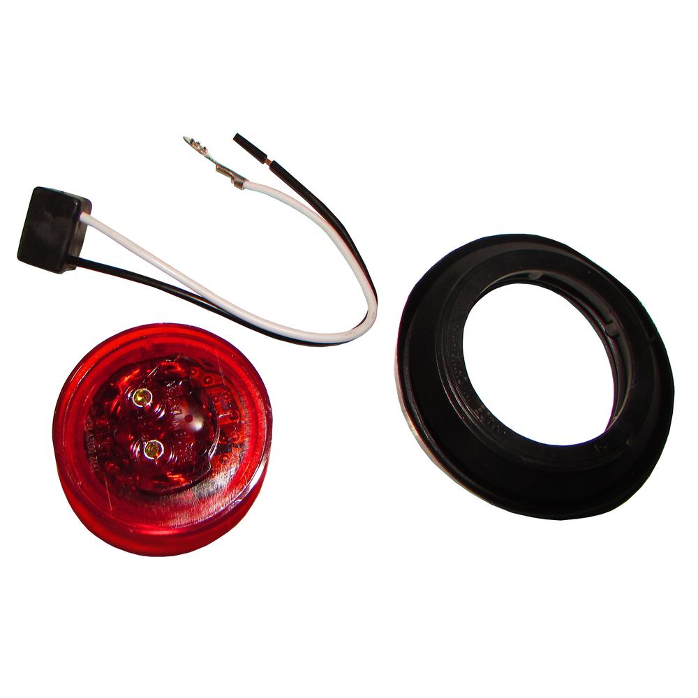 -2" Sealed Round LED Clearance Marker Red Lamp with Pigtails / Wiring and Open Back Grommet