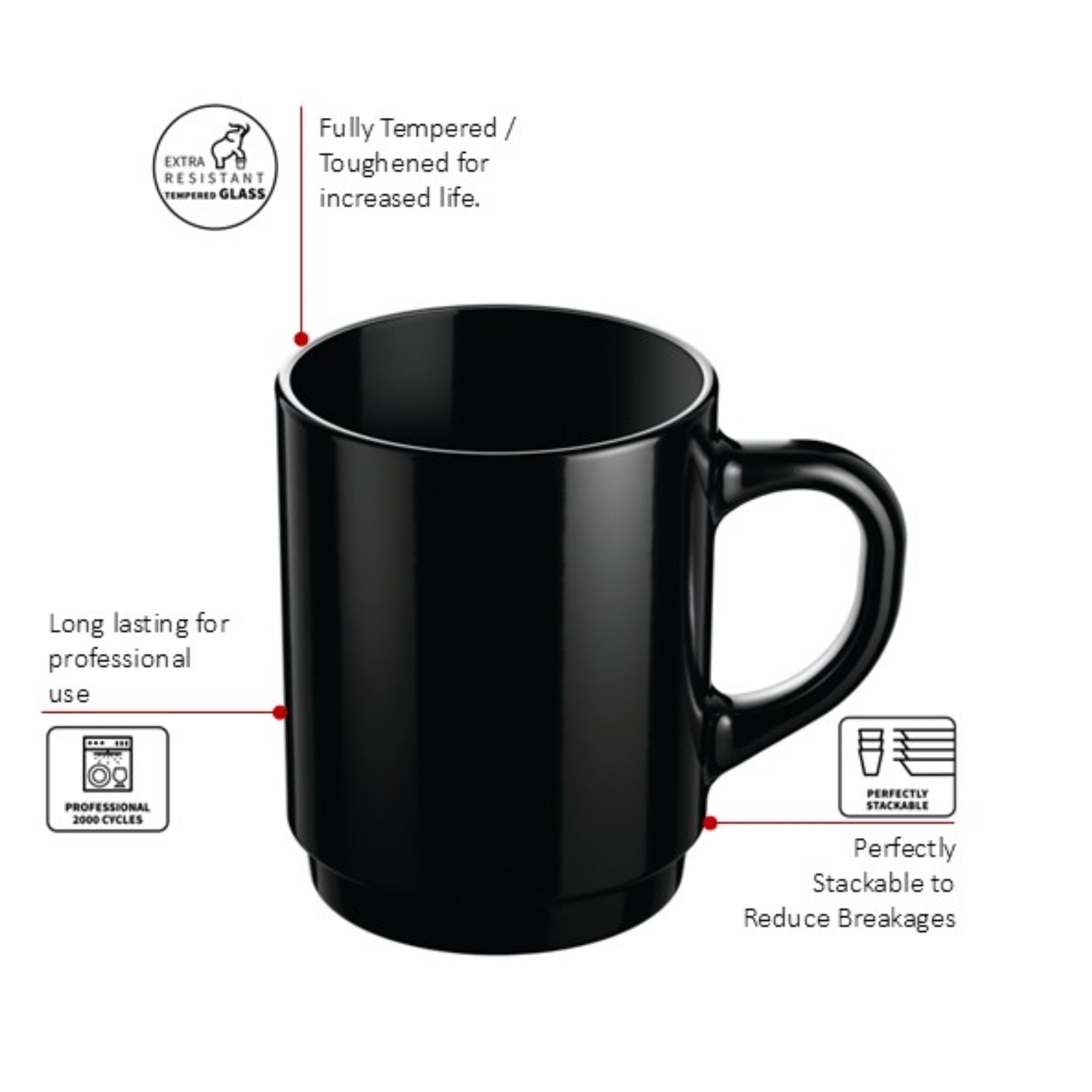 The Luminarc Black Mug combines durability, practicality, and style, making it a perfect choice for both home and professional use. This mug is easy to maintain, ensuring it remains a reliable part of your drinkware collection for years to come.