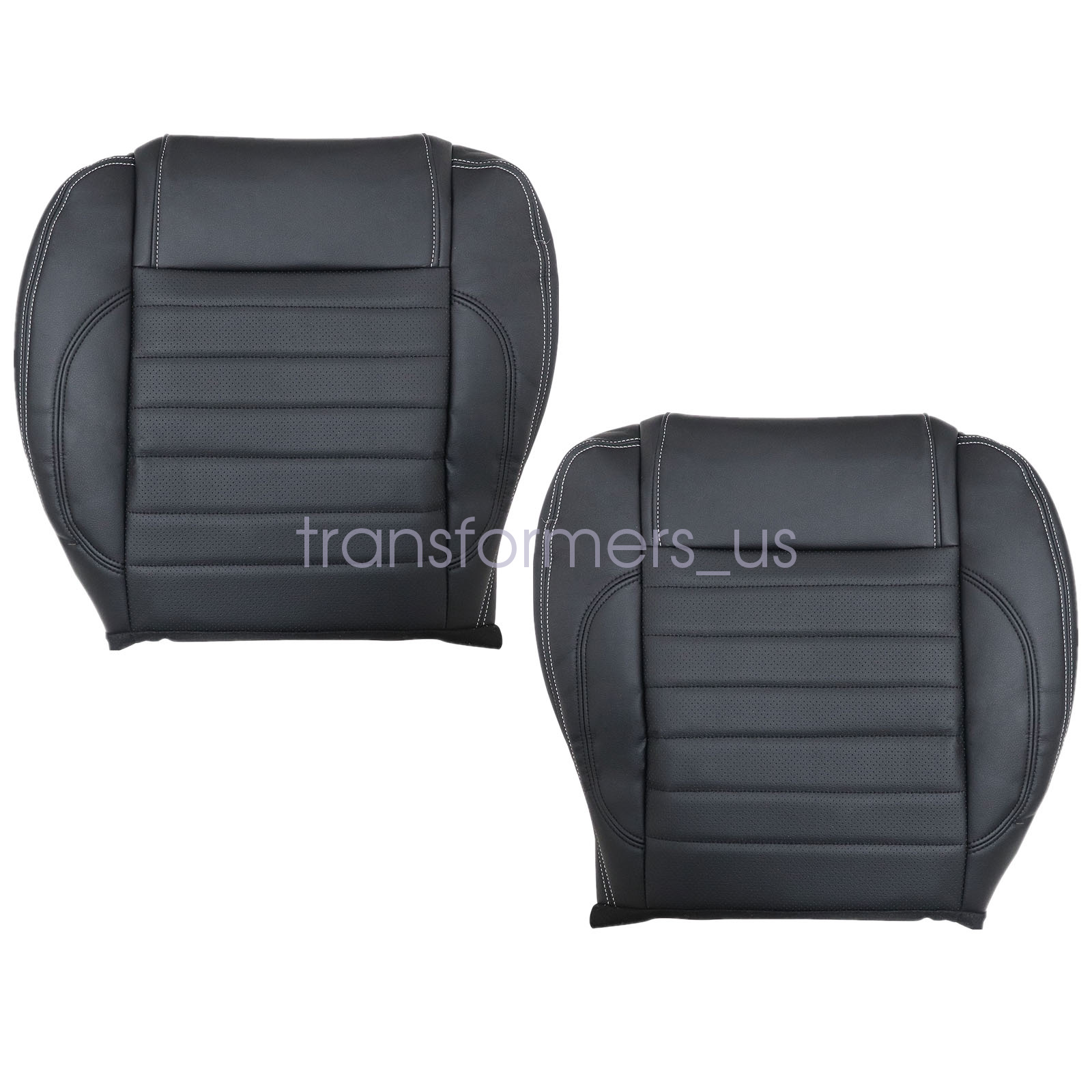 Fits 2010-2014 Ford Mustang Front Driver & Passenger Side Leather Perforated Bottom Seat Cover Black