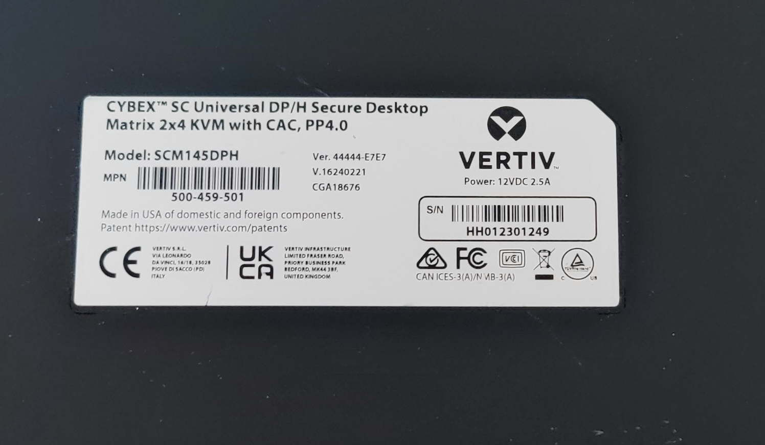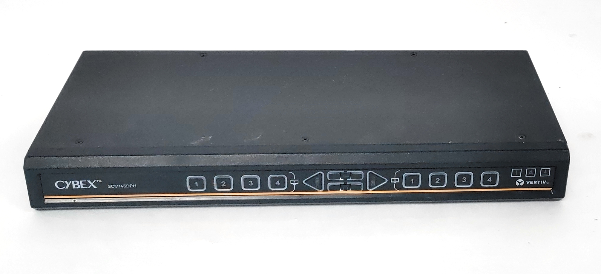 - Includes: (1) Vertiv Cybex SCM145DPH Secure Matrix KVM 4 Computer 2 User Support 4K @60Hz