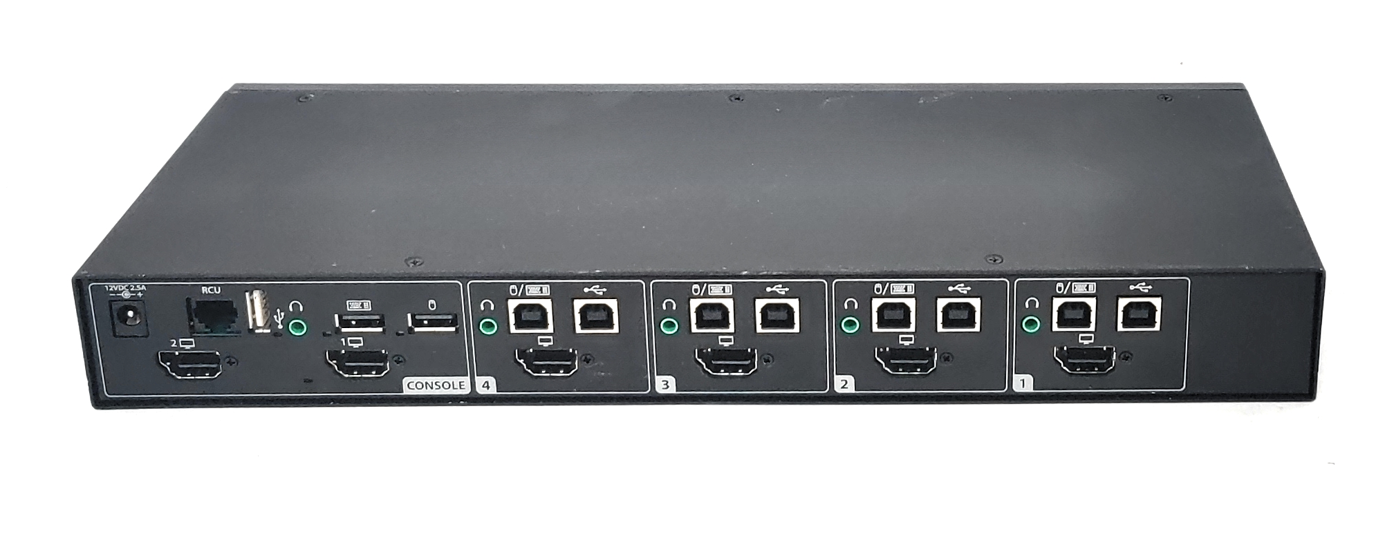 Ideal for environments that require secure interaction between multiple computers with strong peripheral control and isolation. Supports up to 4 computers, with 2 local user stations. Includes universal video input/output options (DisplayPort, HDMI, DVI-D), authentication support (smart card / biometric), and high quality video up to Ultra-HD 4K at 60 Hz.