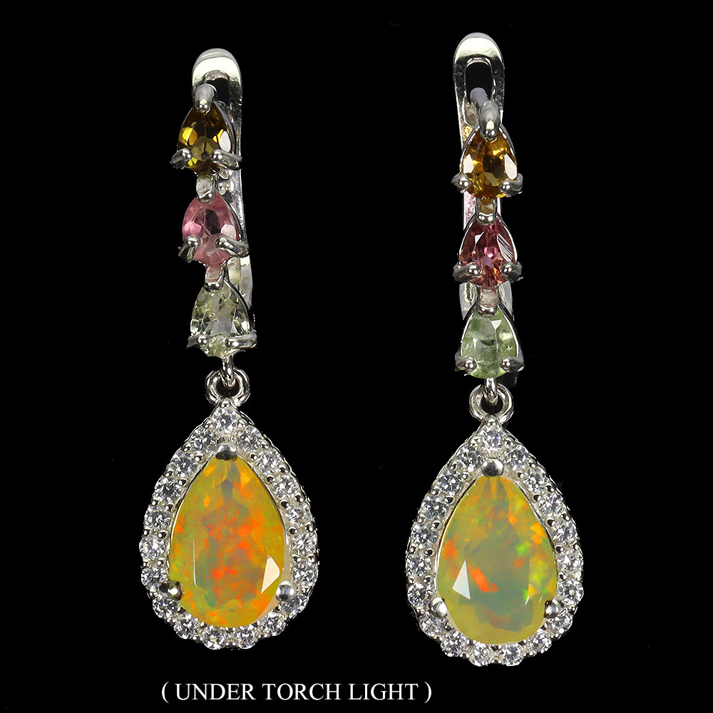 925 Sterling Silver Earrings Pear Fire Opal Emerald Tanzanite No USA Import Fees