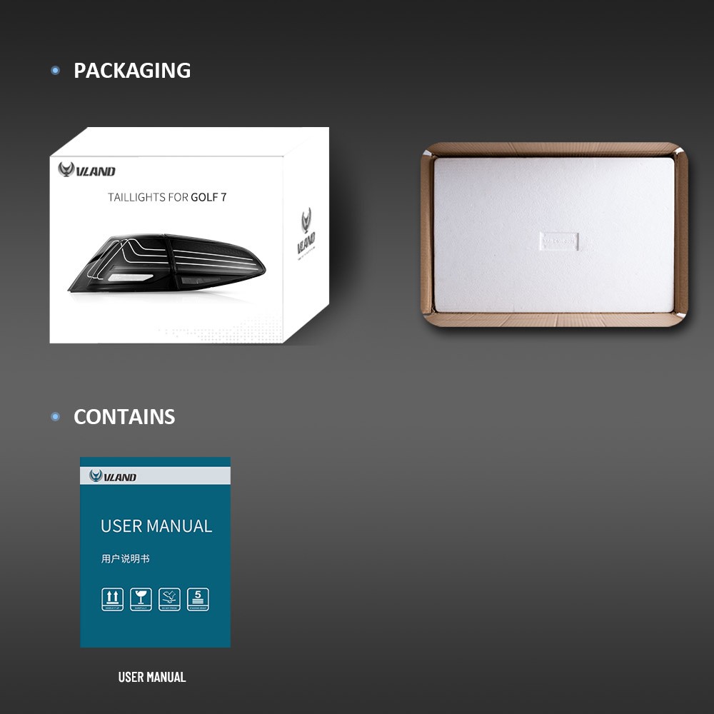 The package includes: 1 pair of headlights and 1 pair of taillights.