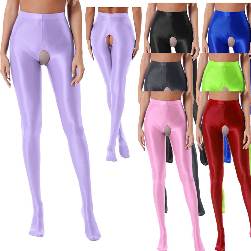 Womens Glossy Crotchless Pantyhose High Waist Elastic Waistband Leggings Nightwear.