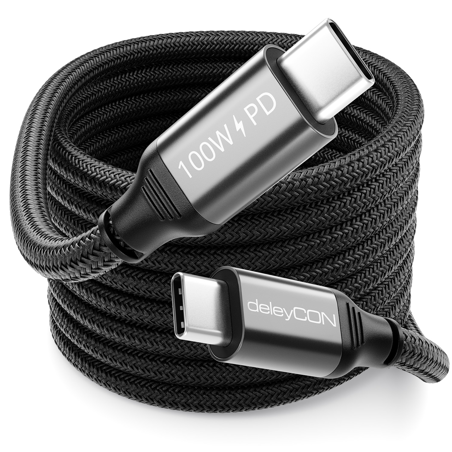 deleyCON 0,30m USB-C Kabel USB3.2 Gen2 (10Gbit/s, 100W, 4K60Hz) iPhone/Samsung/iPad USB-C Kabel 100W – Schnellladen und 4K-Videoübertragung in einem