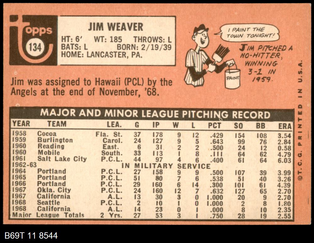 | 1969 Topps #134 Jim Weaver | 7 - NM | Front | Back |