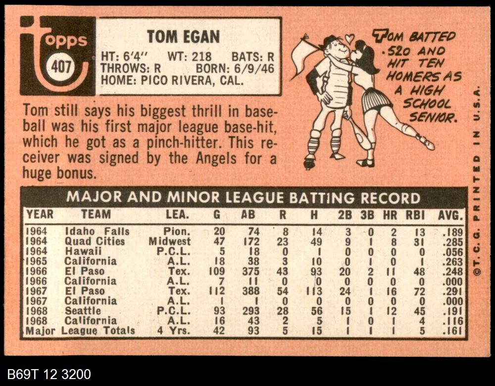 | 1969 Topps #407 Tom Egan | 5 - EX | Front | Back |