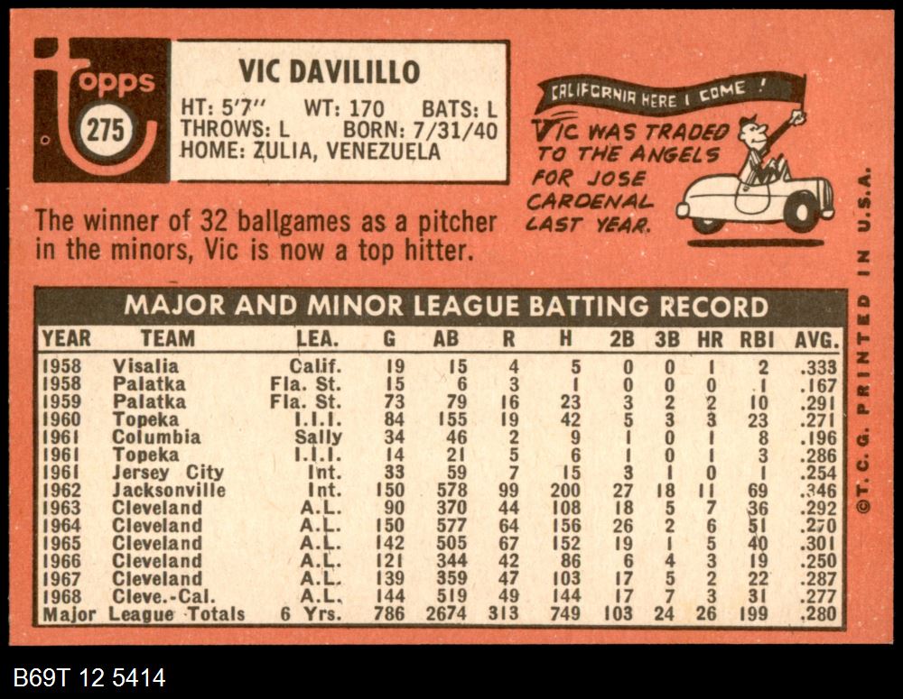 | 1969 Topps #275 Vic Davalillo | 7 - NM | Front | Back |