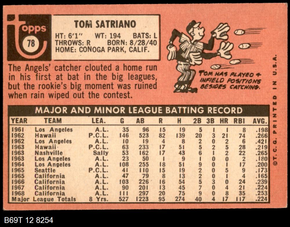 | 1969 Topps #78 Tom Satriano | 6 - EX/MT | Front | Back |