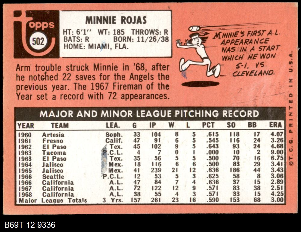 | 1969 Topps #502 Minnie Rojas | 6 - EX/MT | Front | Back |