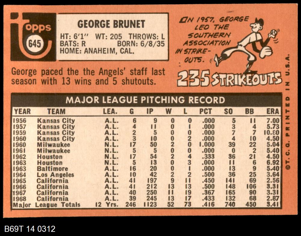 | 1969 Topps #645 George Brunet | 6 - EX/MT | Front | Back |