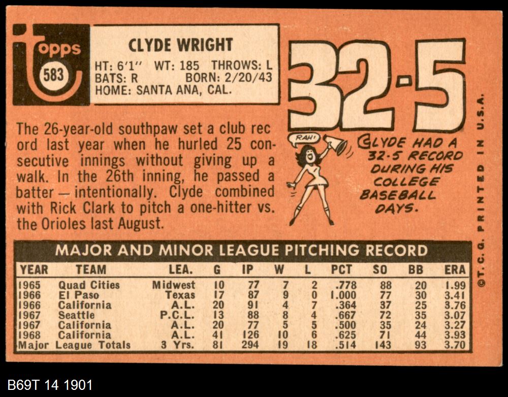 | 1969 Topps #583 Clyde Wright | 4 - VG/EX | Front | Back |