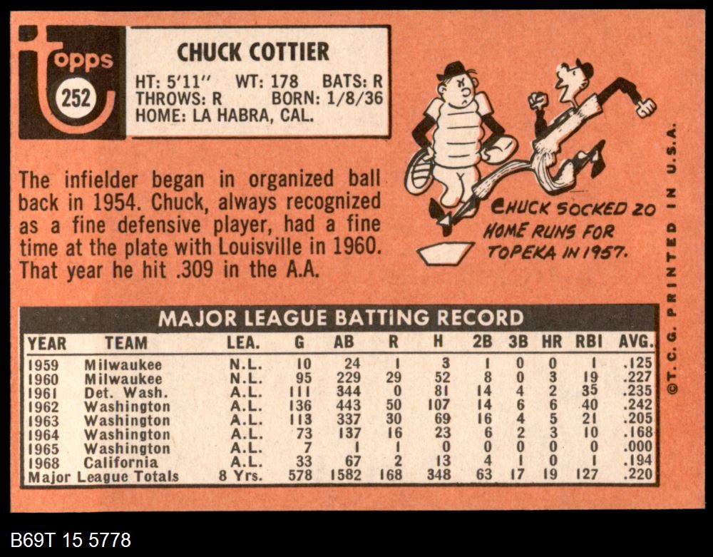| 1969 Topps #252 Chuck Cottier | 6 - EX/MT | Front | Back |