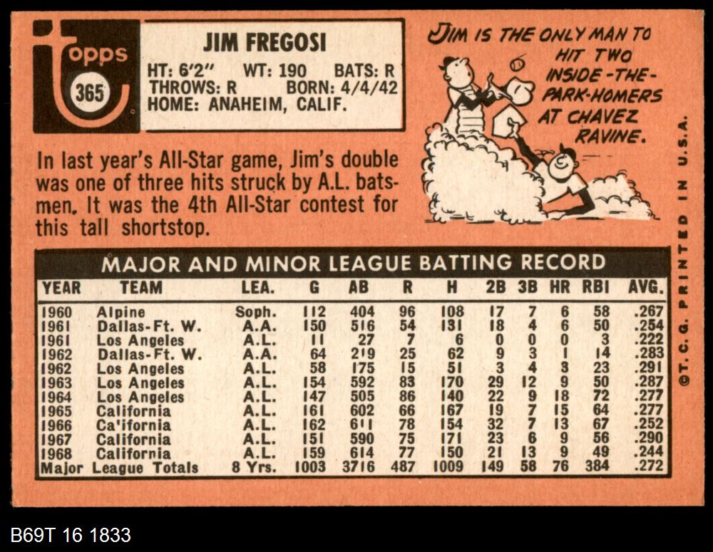 | 1969 Topps #365 Jim Fregosi | 5 - EX | Front | Back |