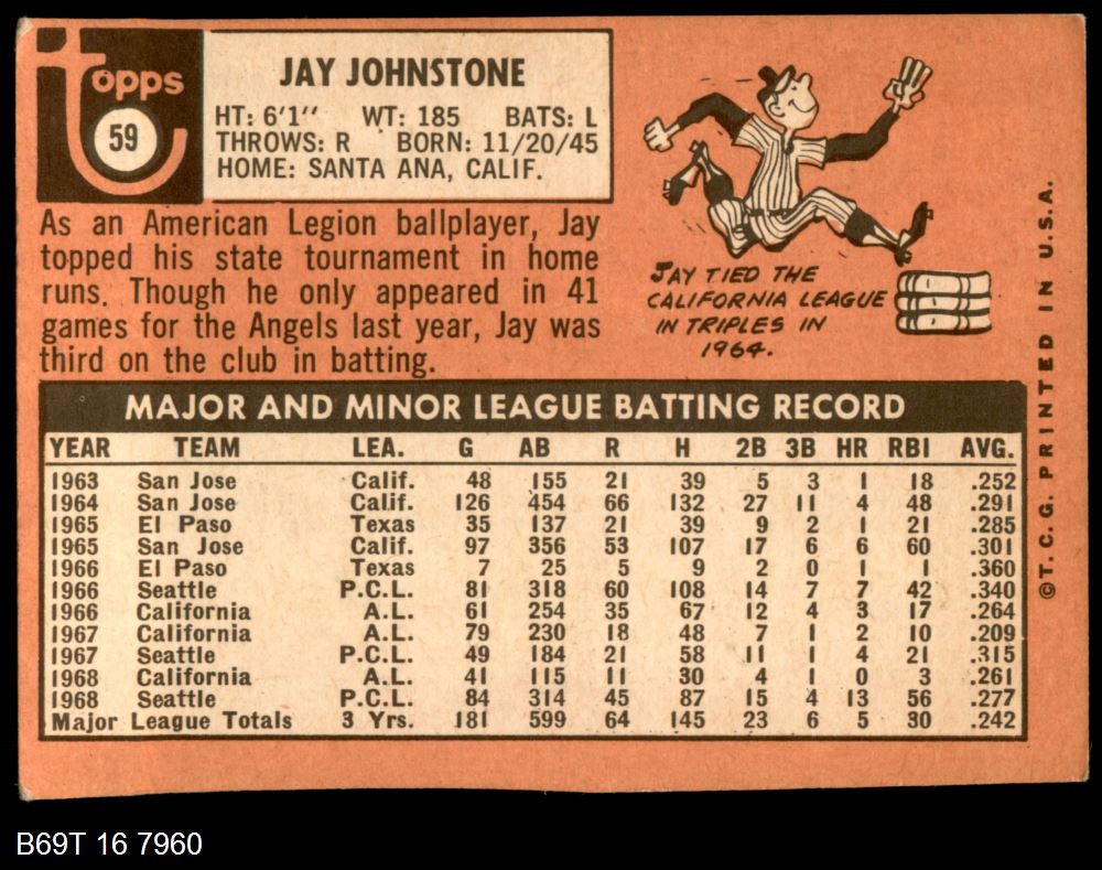 | 1969 Topps #59 Jay Johnstone | 2 - GOOD | Front | Back |