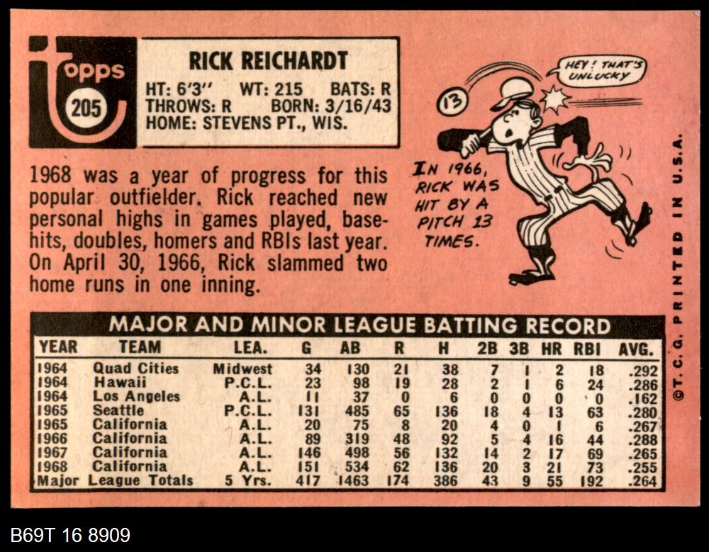| 1969 Topps #205 Rick Reichardt | 5 - EX | Front | Back |