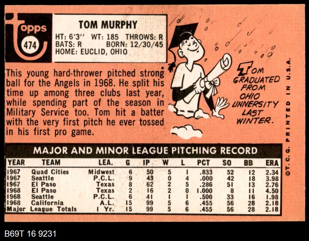 | 1969 Topps #474 Tom Murphy | 4 - VG/EX | Front | Back |