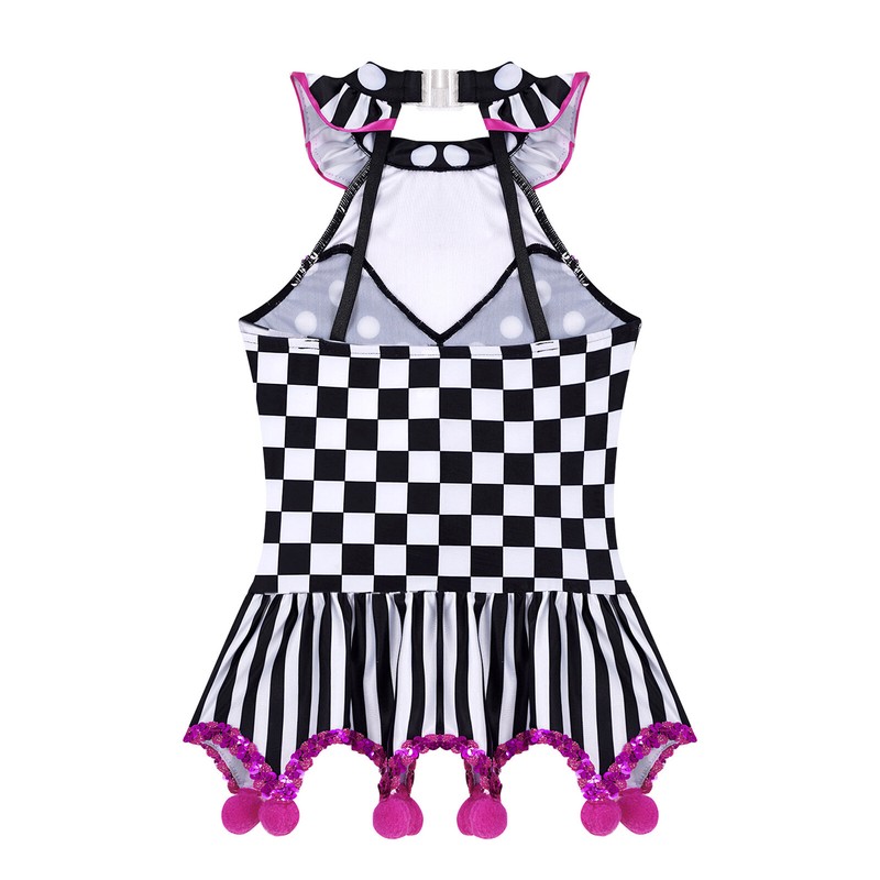 Kids Girls Halter Neck Sleeveless Print Sequins Pompoms Adorned Irregular Hem Dress