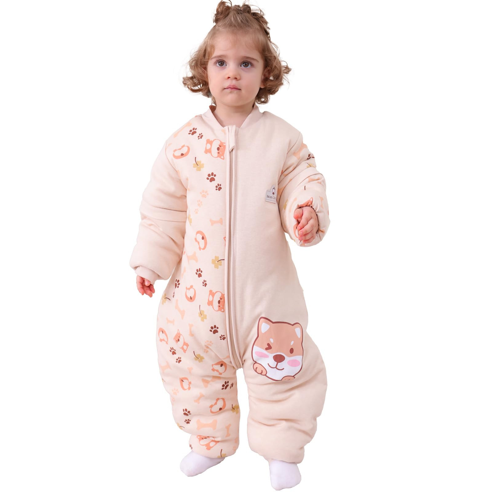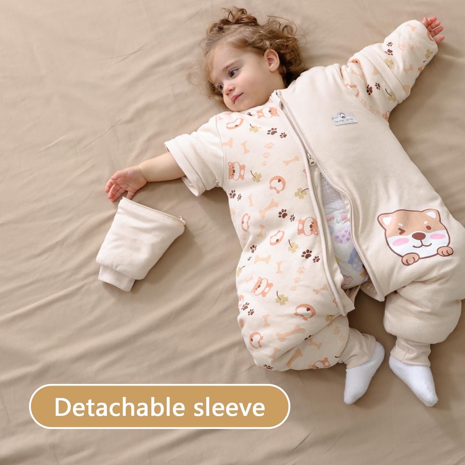 Material: 100% algodón forrado con 100% algodón.Saco de dormir para bebé todo el año, adecuado para temperaturas ambiente de 8 a 15 grados. con mangas desmontables.