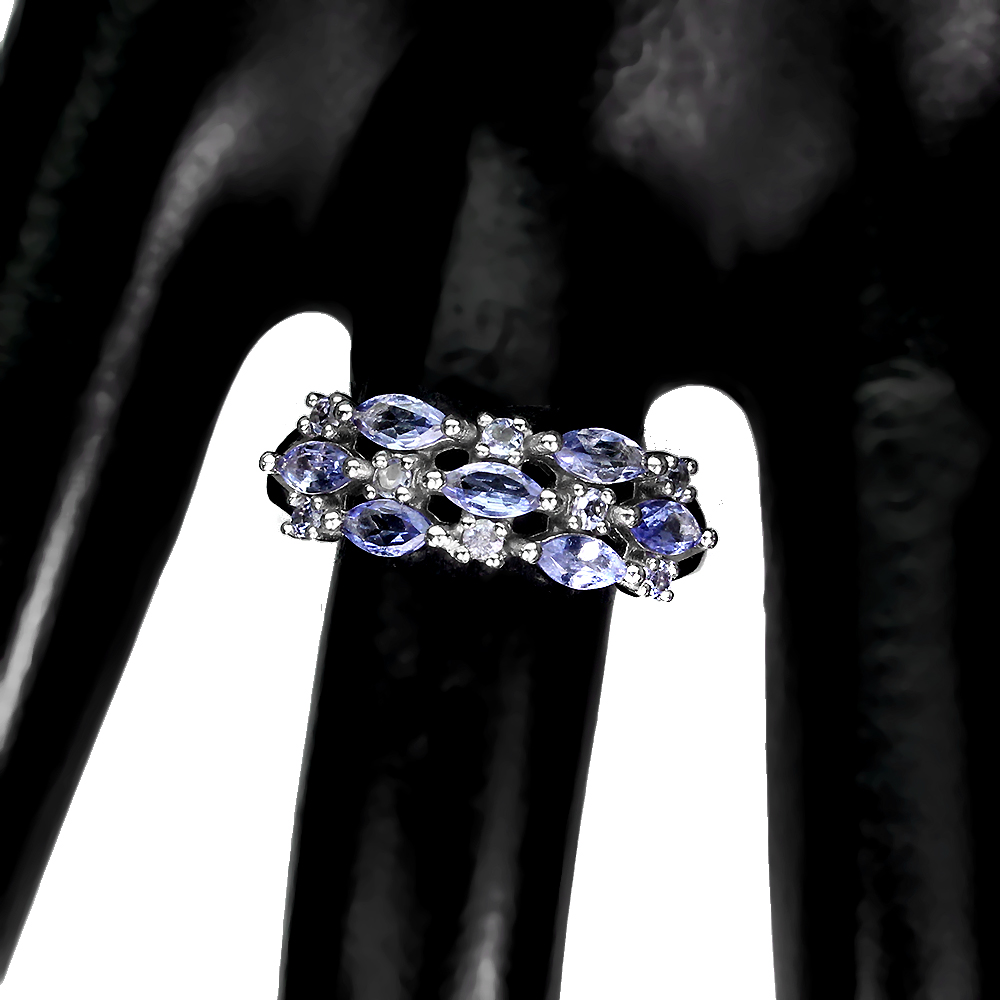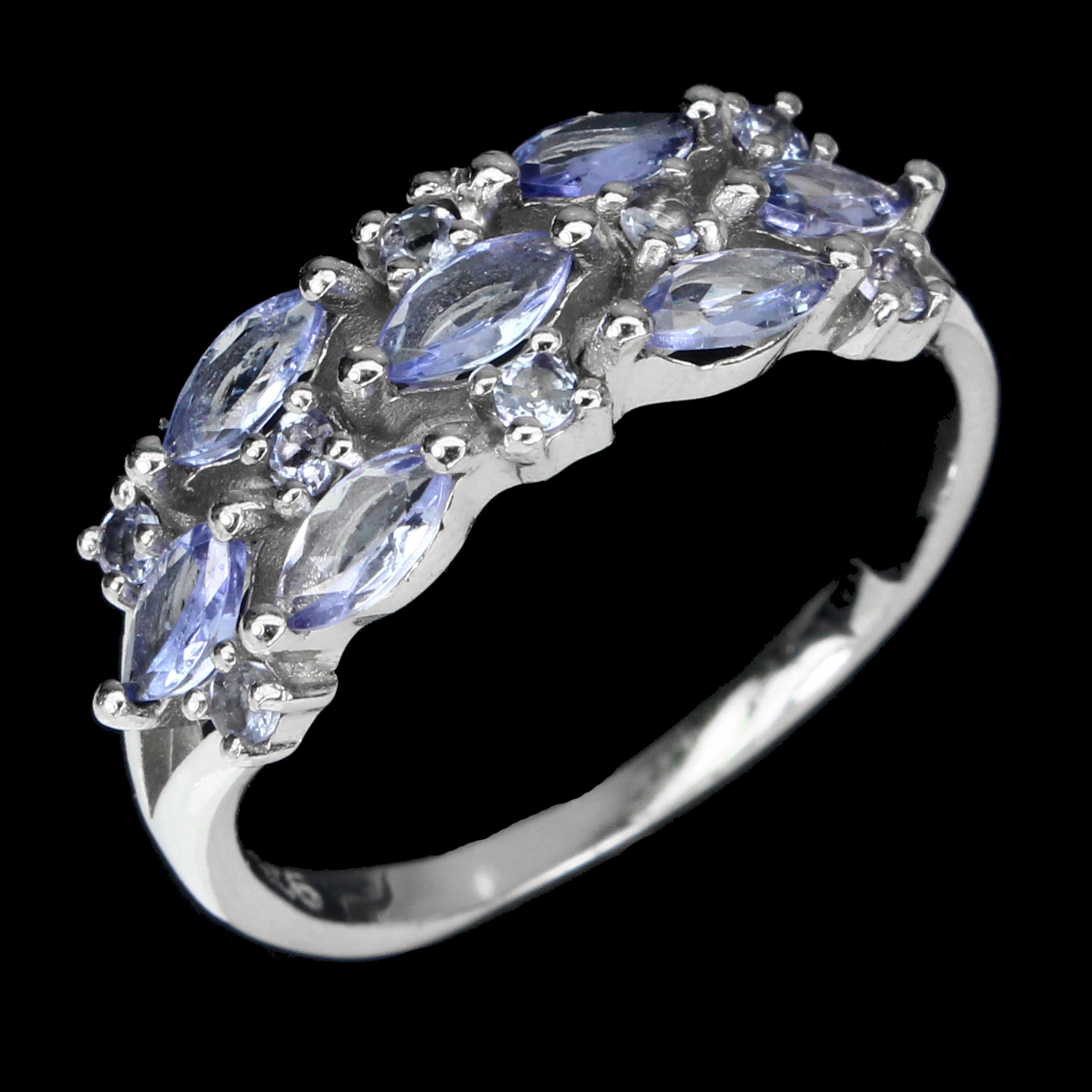 Unheated Marquise Tanzanite 14K White Gold Plate 925 Sterling Silver Ring Size 9.5