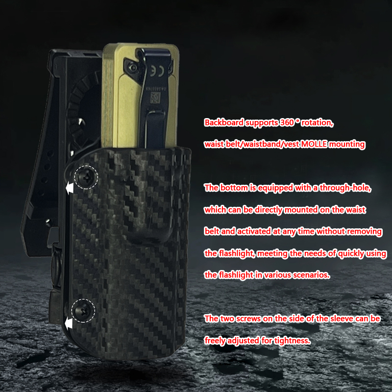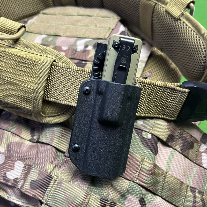 Professional rotating holster designed specifically for OLIGHT Arkfeld Ultra flashlights. Features 360° rotation capability and multiple mounting options for EDC carry and tactical applications.