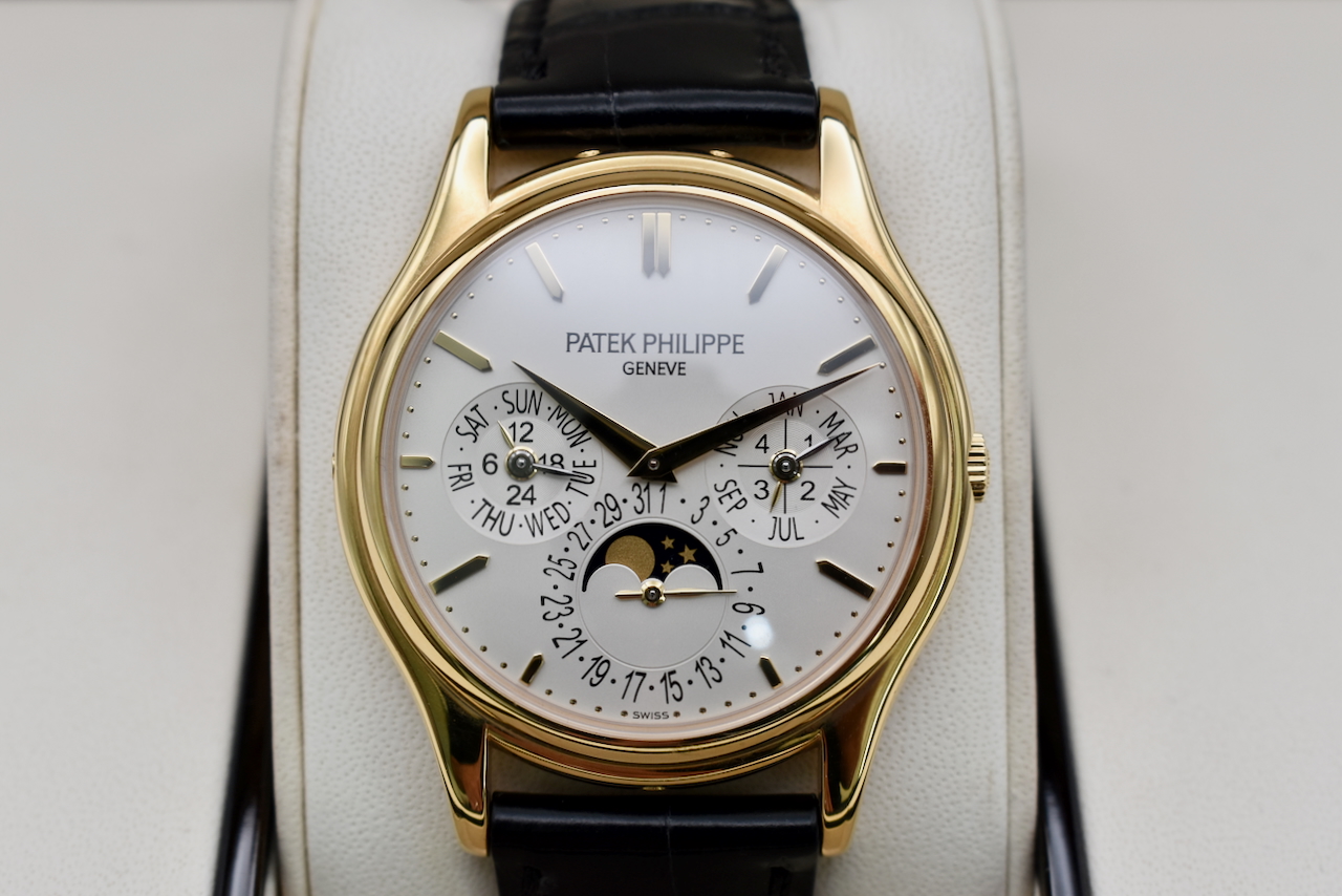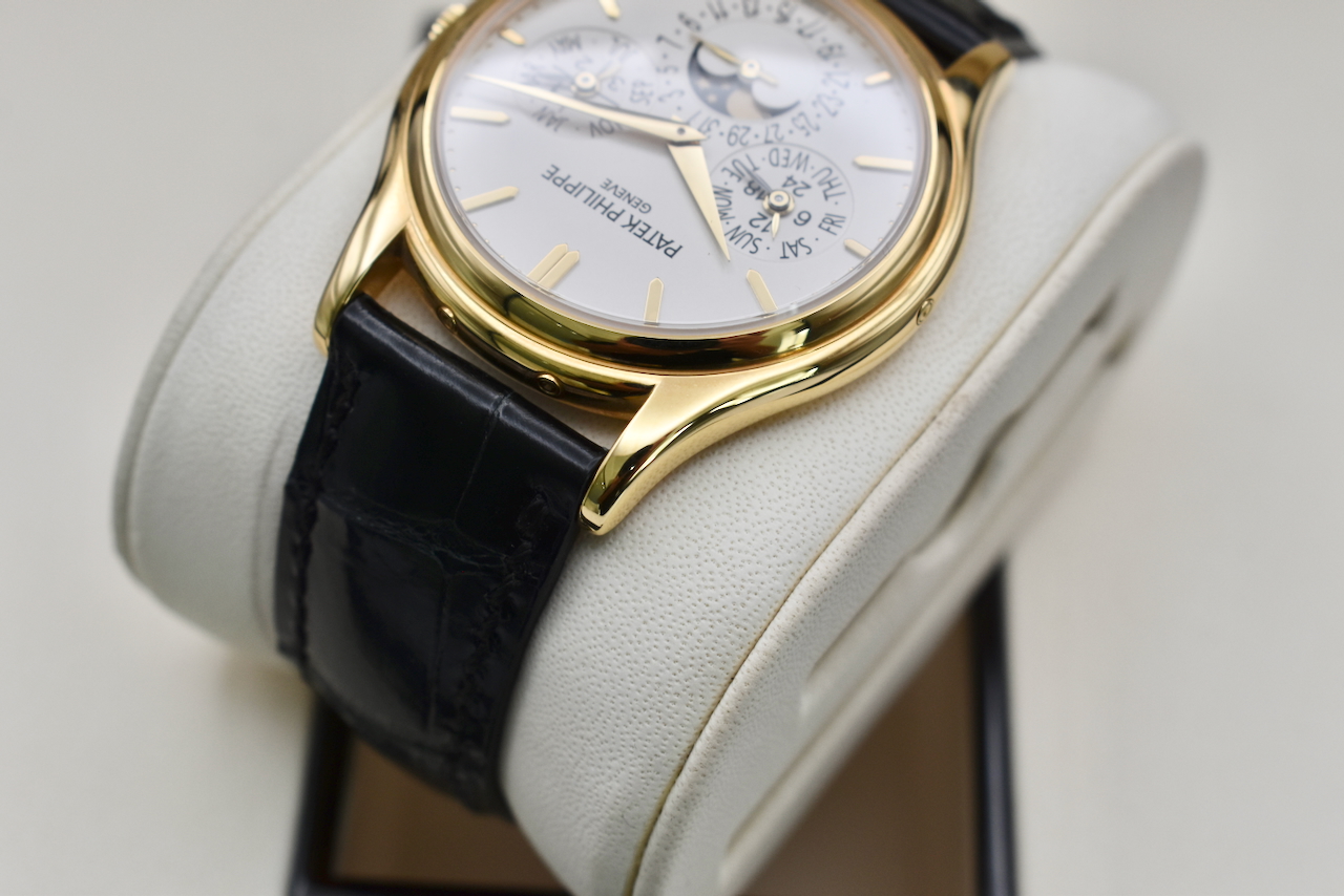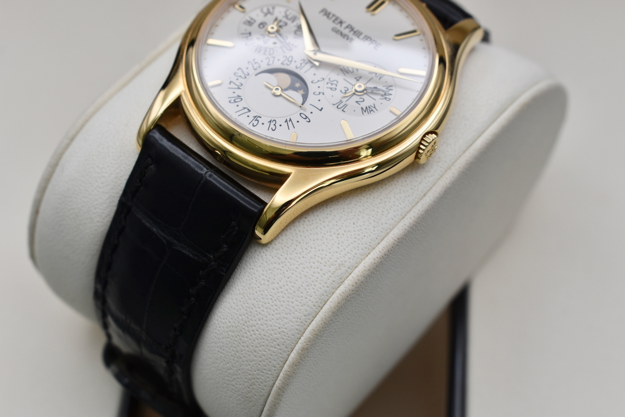 The Patek Philippe Perpetual Calendar 5140J-001 is one of the most iconic grand complication watches in modern watchmaking. Crafted in 18k yellow gold, this elegant masterpiece embodies Patek Philippe’s unrivalled legacy in haute horlogerie and perpetual calendar precision.A symbol of timeless sophistication, the 5140J Perpetual Calendar features a beautifully balanced dial layout with day, date, month, moon phase and leap year indication — all adjusted seamlessly by the brand’s legendary self-winding Caliber 240 Q movement. Its ultra-slim profile makes it one of the most refined and wearable grand complication dress watches ever produced by Patek Philippe.The 5140J-001 continues Patek Philippe’s tradition of creating collectable, investment-grade timepieces, appealing to both seasoned collectors and connoisseurs of Swiss luxury watches. As a discontinued model, it has become increasingly sought after, representing not just a watch, but a piece of Patek Philippe heritage.Available from Tempus Lord, a trusted luxury watch specialist based in Hatton Garden, London’s historic jewellery district, this timepiece is offered in authentic, and like new condition, with guaranteed provenance and full peace of mind.