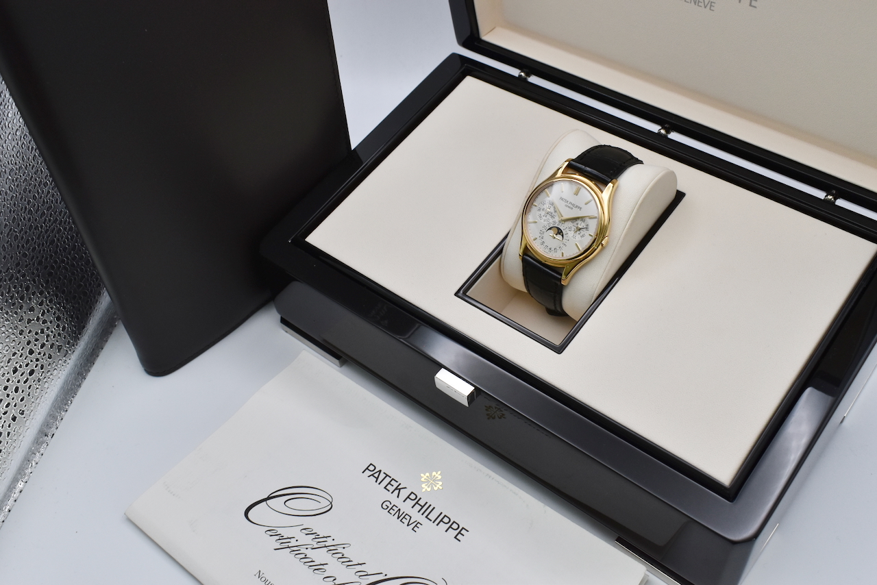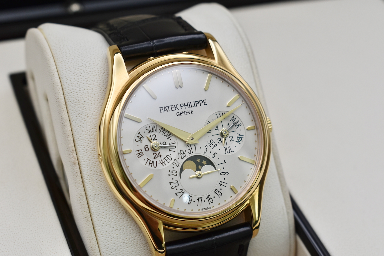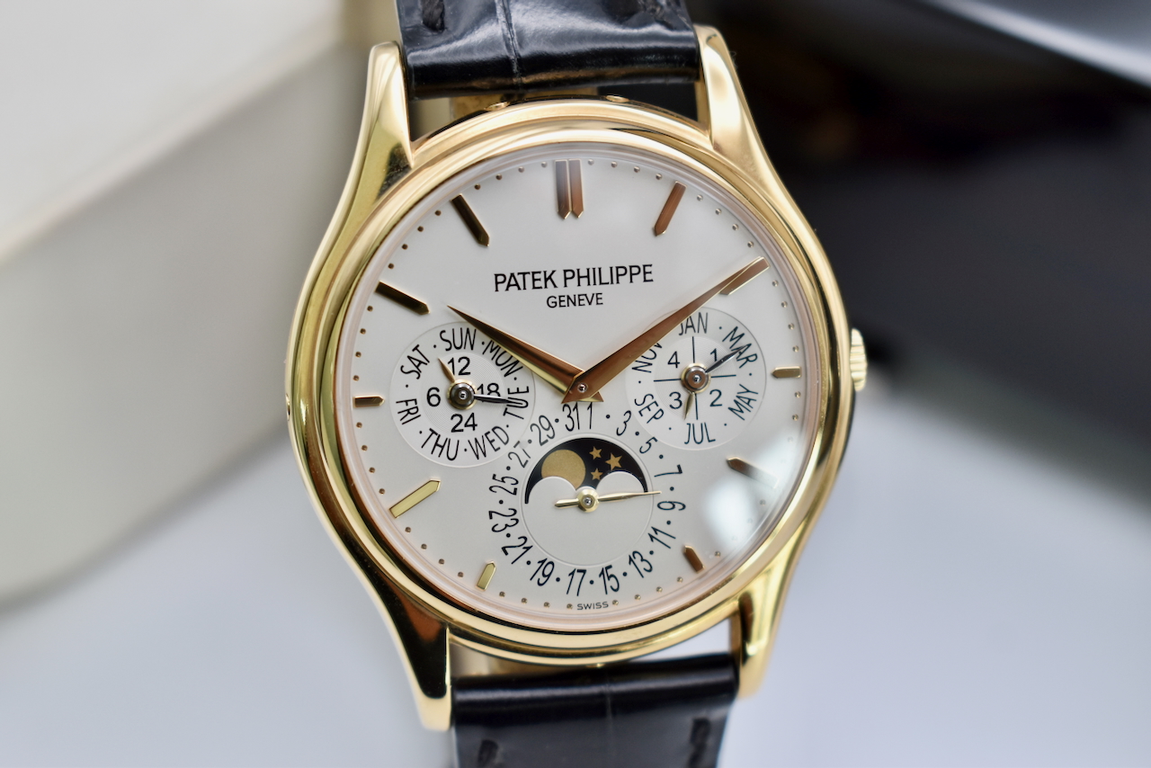 The Patek Philippe Perpetual Calendar 5140J-001 is one of the most iconic grand complication watches in modern watchmaking. Crafted in 18k yellow gold, this elegant masterpiece embodies Patek Philippe’s unrivalled legacy in haute horlogerie and perpetual calendar precision.A symbol of timeless sophistication, the 5140J Perpetual Calendar features a beautifully balanced dial layout with day, date, month, moon phase and leap year indication — all adjusted seamlessly by the brand’s legendary self-winding Caliber 240 Q movement. Its ultra-slim profile makes it one of the most refined and wearable grand complication dress watches ever produced by Patek Philippe.The 5140J-001 continues Patek Philippe’s tradition of creating collectable, investment-grade timepieces, appealing to both seasoned collectors and connoisseurs of Swiss luxury watches. As a discontinued model, it has become increasingly sought after, representing not just a watch, but a piece of Patek Philippe heritage.Available from Tempus Lord, a trusted luxury watch specialist based in Hatton Garden, London’s historic jewellery district, this timepiece is offered in authentic, and like new condition, with guaranteed provenance and full peace of mind.