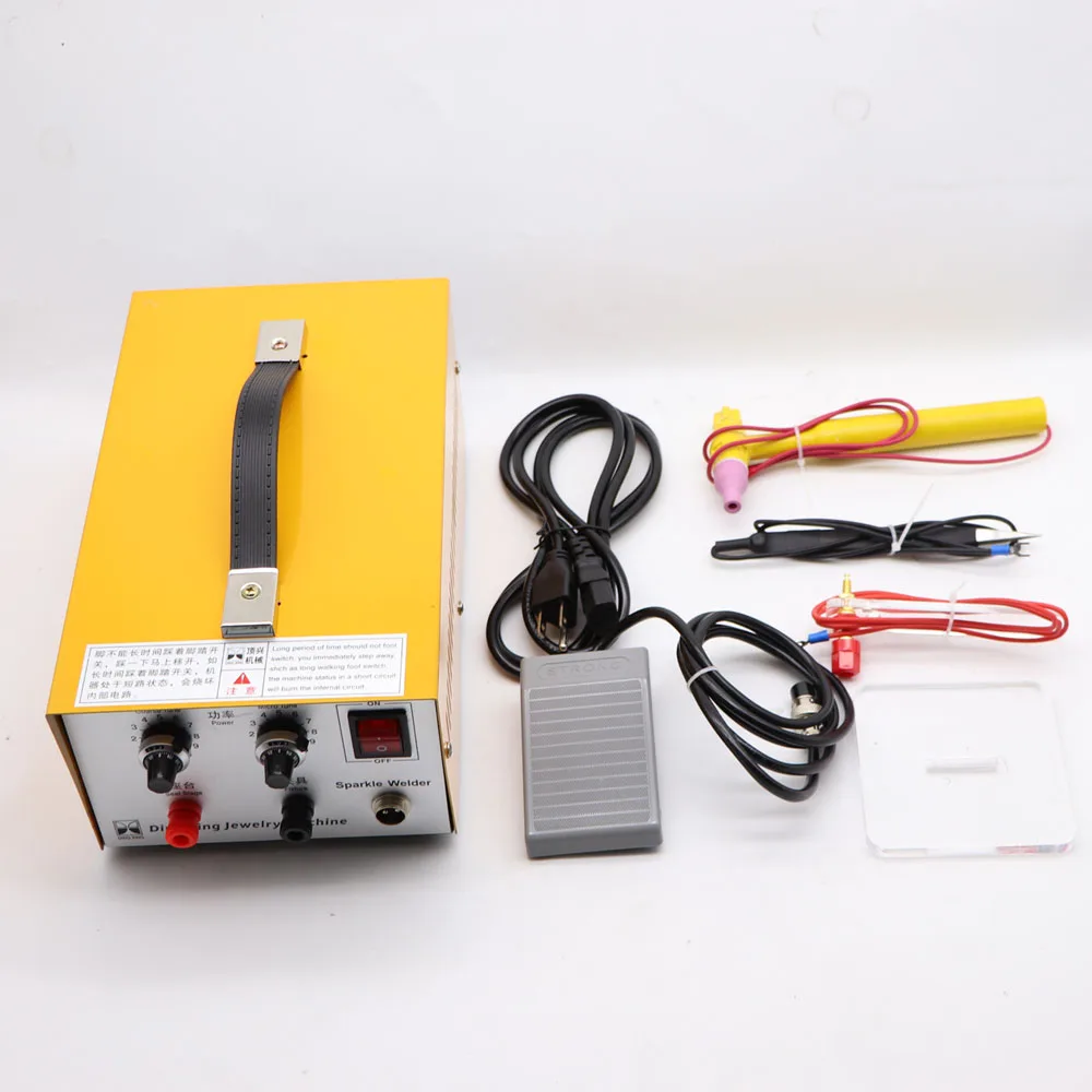 The spot welding machine can be used for rapid welding of platinum, gold, K gold, silver, ring mouth, melon buckle, precision welding of thin wires, and direct welding without solder powder.