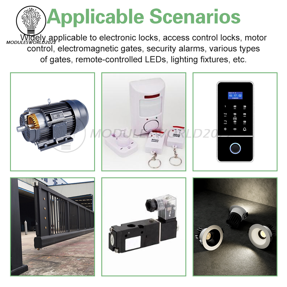 3. Enables bidirectional switch control for diverse load types including lighting, motors, and access control systems