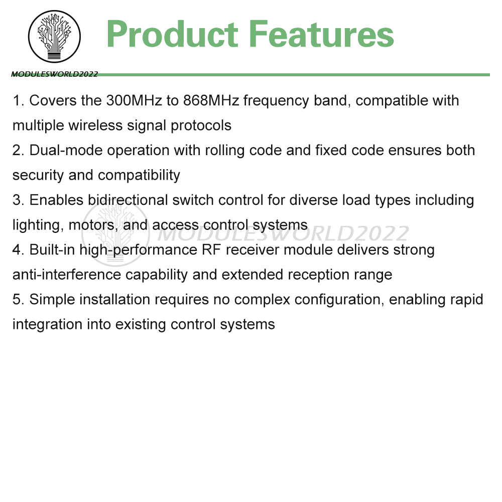 4. Built-in high-performance RF receiver module delivers strong anti-interference capability and extended reception range