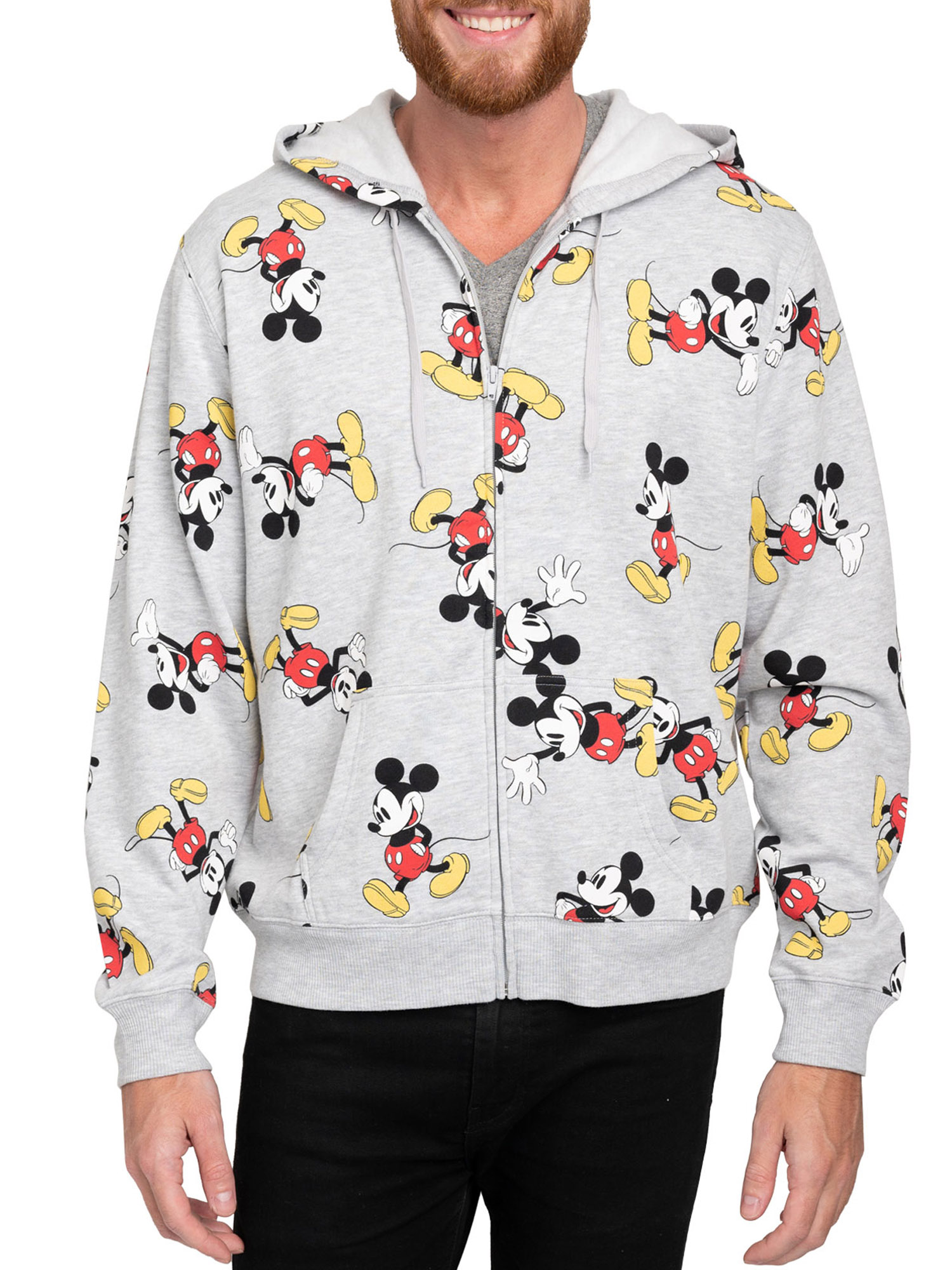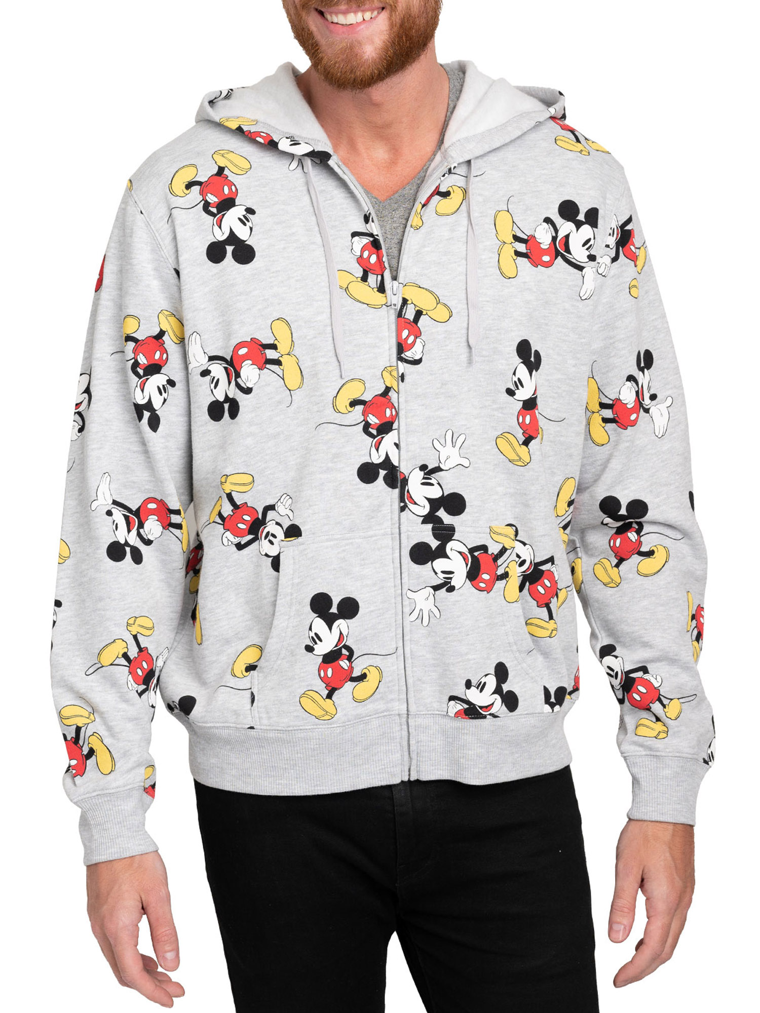 - Disney Mens Mickey Mouse Zip Up Hoodie All-Over Print Sweatshirt Heather Gray.