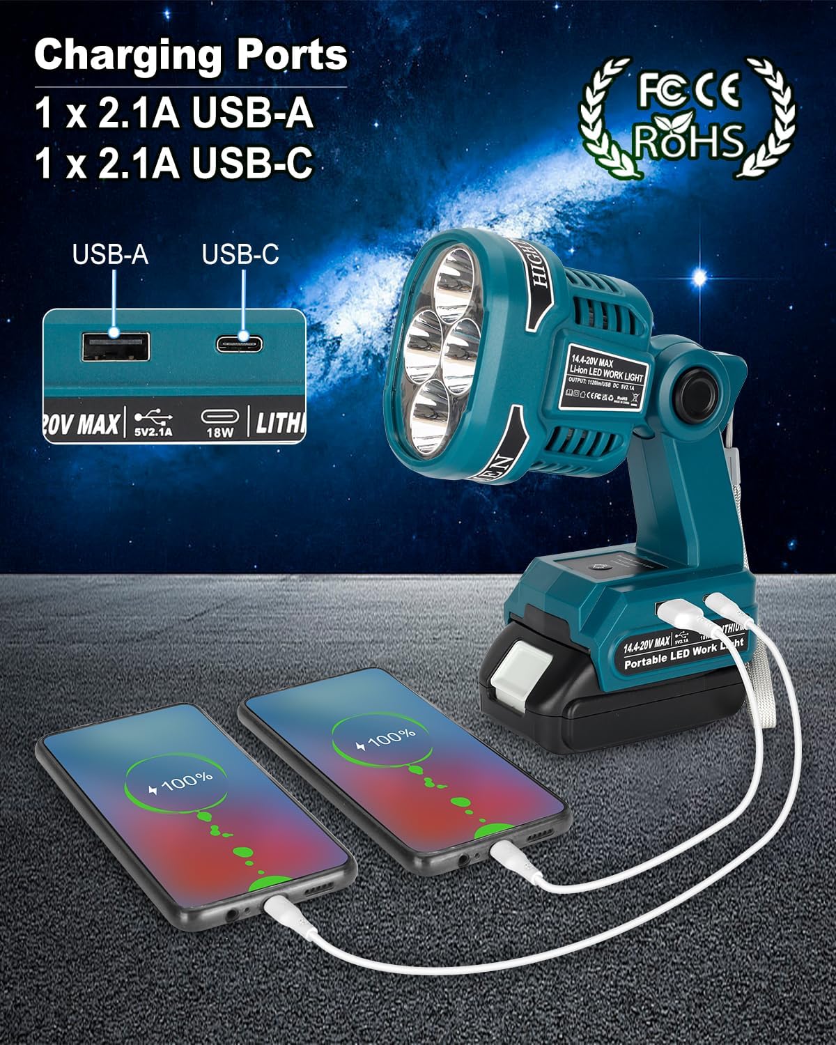 【Perfectly Compatible with Makita 14.4-18v Batteries】- Our LED spotlight compatible with Makita 18 volt lithium-Ion battery BL1815B BL1820B BL1830B BL1835B BL1840B BL1845B BL1850B BL1860B etc. 14.4V lithium-Ion Battery: BL1415 BL1430 BL1430B BL1440 BL1450 etc.(Batteries Not Included)