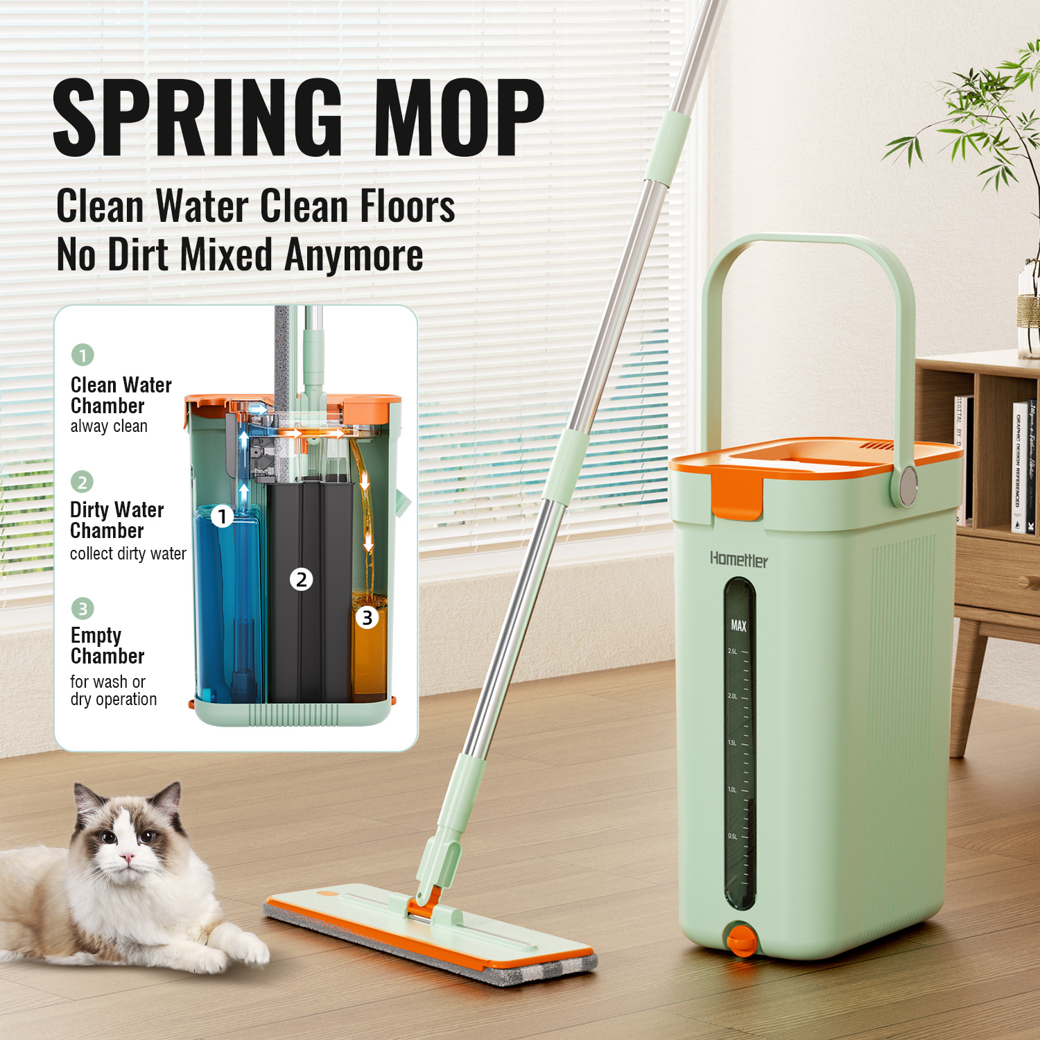 🛡️Lightweight & Compact: Easy to store and maneuver, this mop set works well in bedrooms, bathrooms, kitchens, living rooms—anywhere you need a quick cleaning sweep.