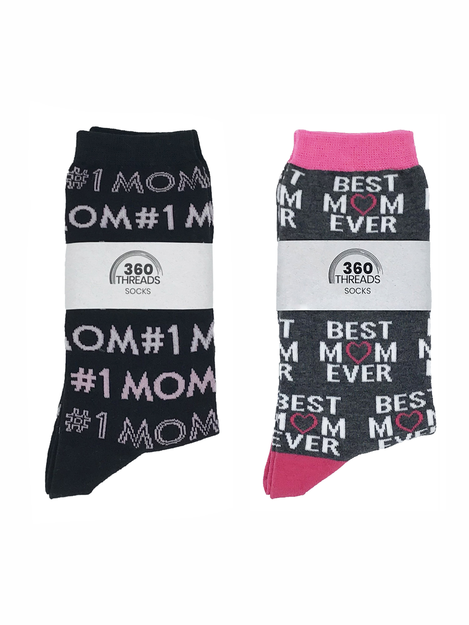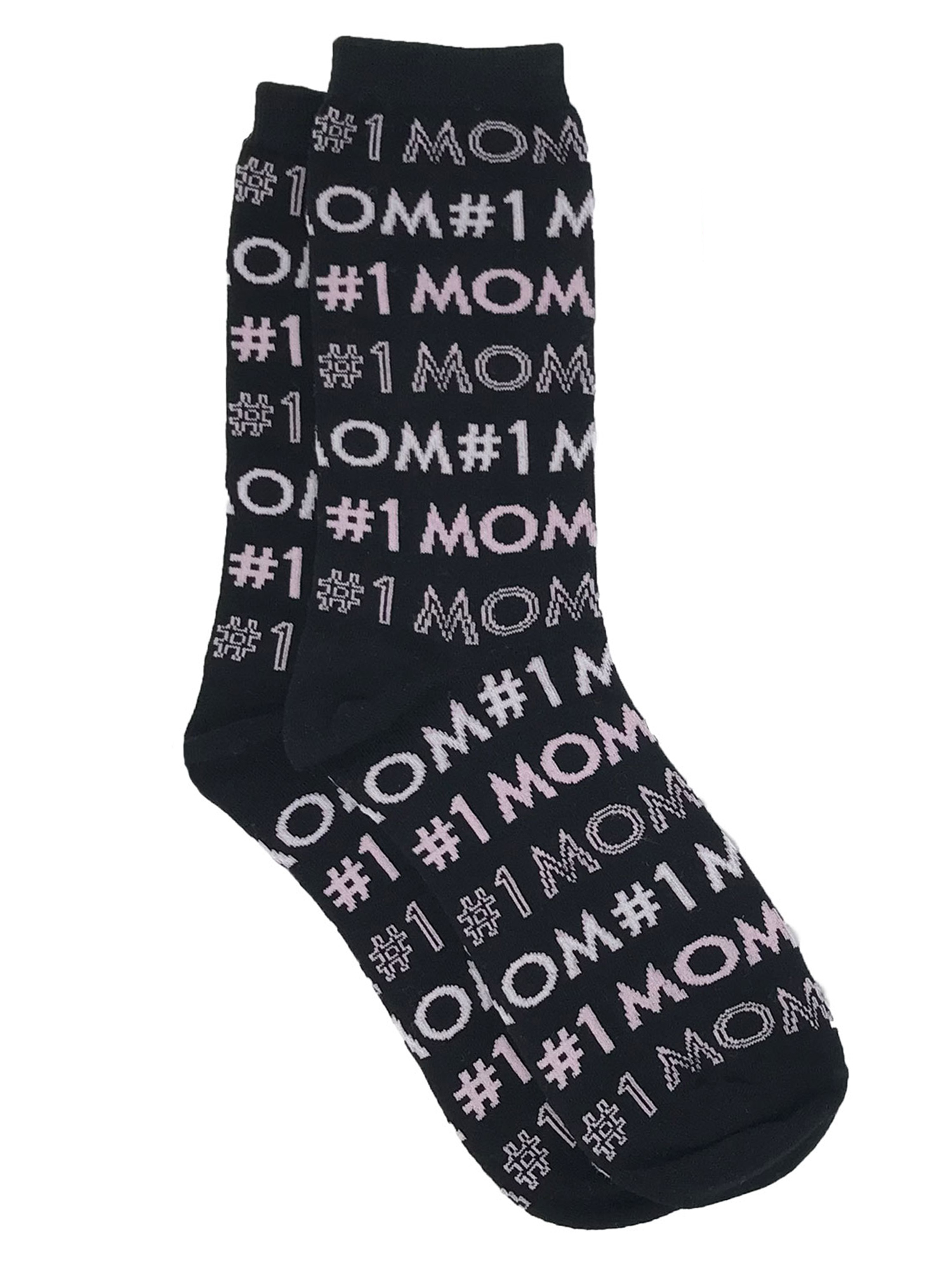 - Includes: 1 Pair of Women's #1 Mom All-Over Print Novelty Socks Heathered Black and 1 Pair of Women's Best Mom Ever All-Over Print Novelty Crew Socks Pink Gray .