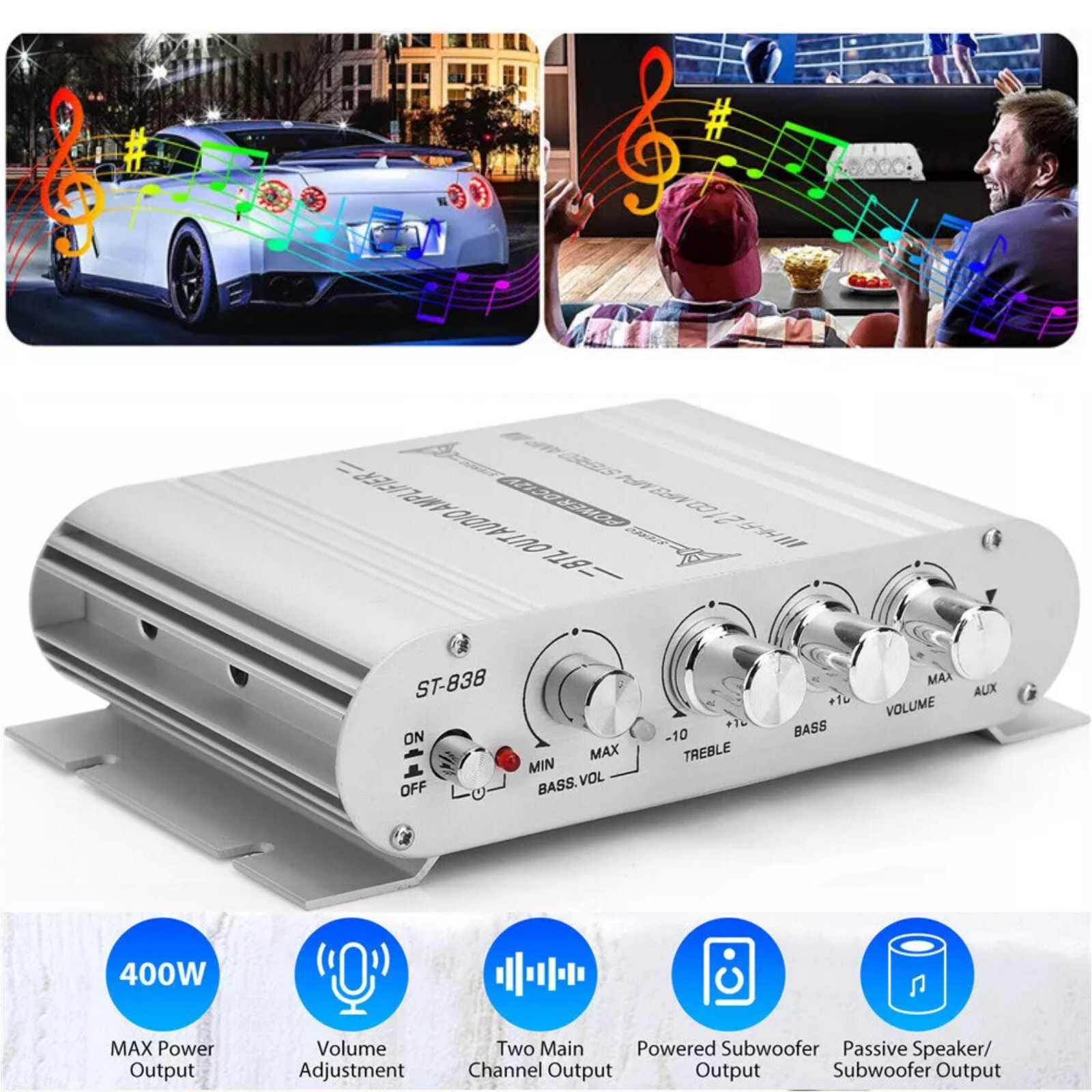 Channel Configuration: 2.1 Power Amplifier, supports connection to 2 speakers and a subwoofer