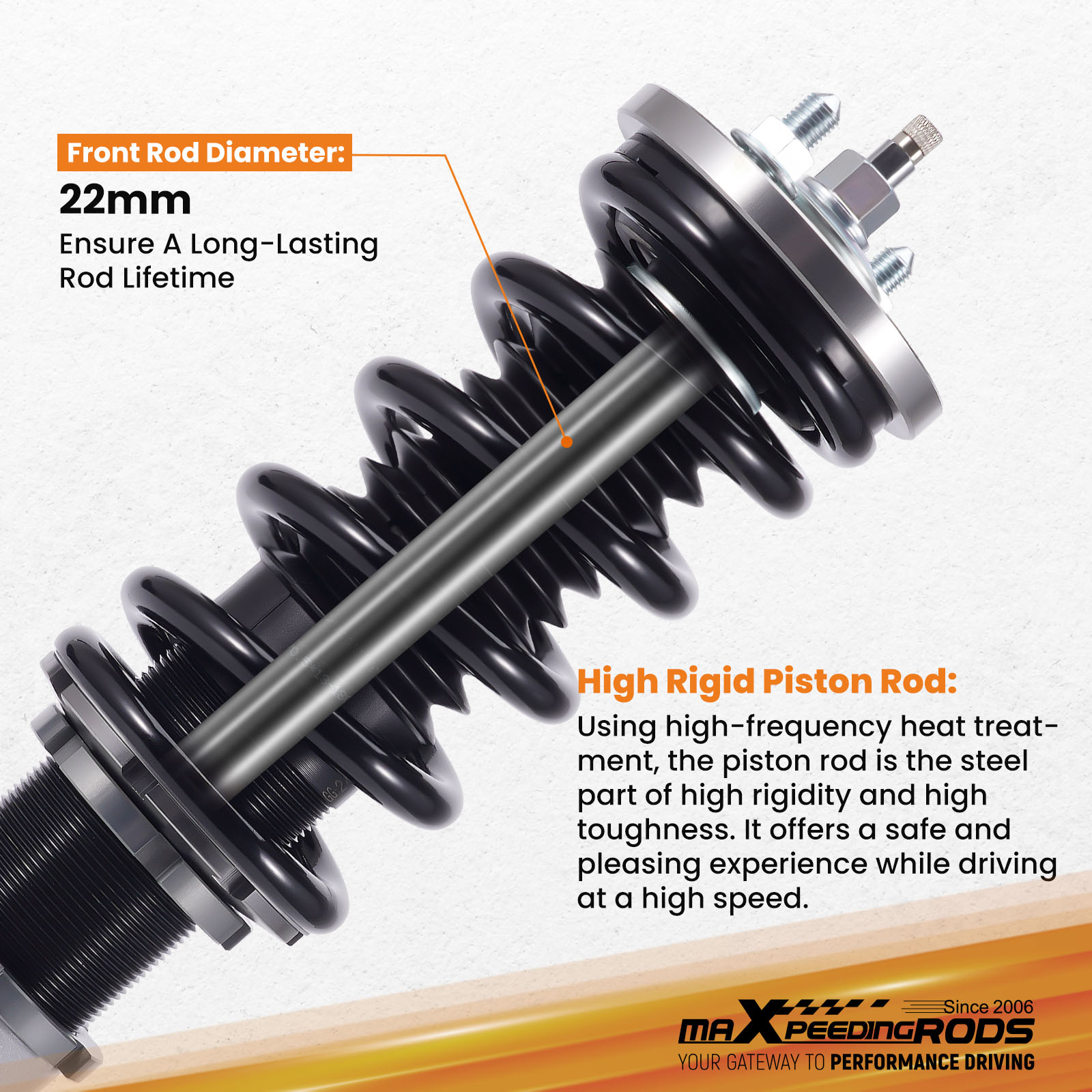 2. A 24 rebound damping adjustment level allows you the ability to perfectly dial in your coilover setup. You will experience better ride quality in all road conditions.